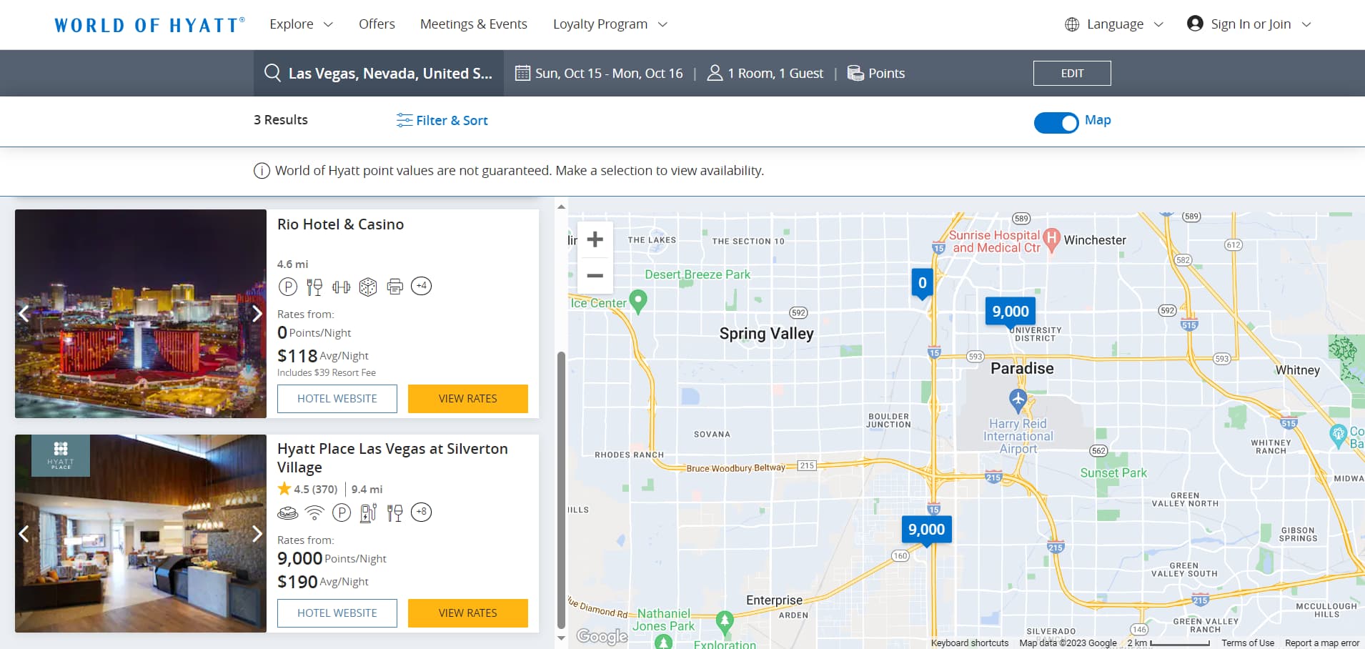 好像是10/1/2023开始的,Rio 从 Caesars 酒店变成 Hyatt 的了。