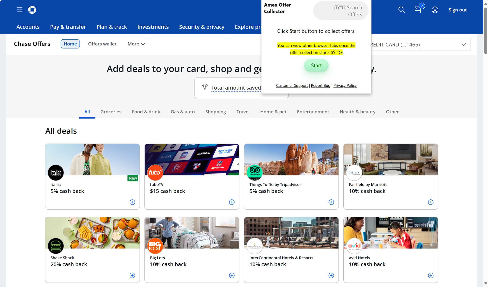 chase offer collection, 只能对一个卡操作,又N张chase 卡,好像要点很多次collect?