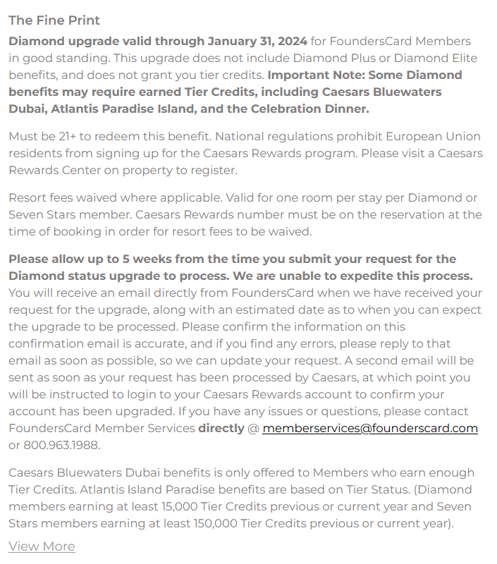 因为这个免费elite只有三个月,而caesars会籍是一月底到期,所以想要明年diamond或一坤两吃的朋友可以在十一月后提交,当然到时候这条路还能不能走那我就不知道了 ![]()