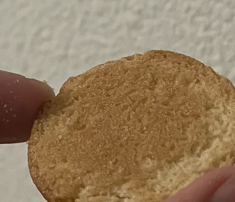 这玩意两刀,香草有不轻的人工甜味剂味道,但尚在我忍受范围内,主要很童年记忆,脆脆的,只多了一味香草。 我30分钟内已经不知不觉吃了半袋了,说实话有点腻,但我会回购。