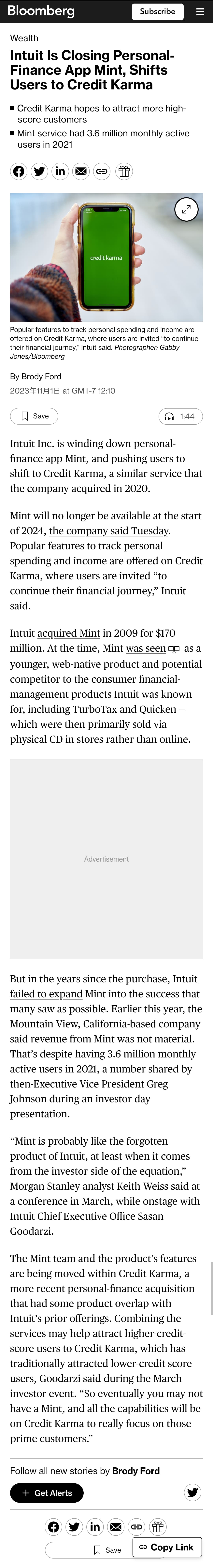 啊这 mint没了好麻烦啊 得找替代品 还得一个一个重新link账户 哭了