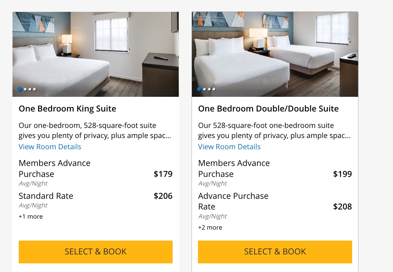 我看了下,酒店官网上很鸡贼。现金有2 bedroom的suite,点数只有1 king suite,但是客服说这俩都不是standard suite所以没法升级……我让她查了12个月内的所有房型没有一个available的……有点懵逼