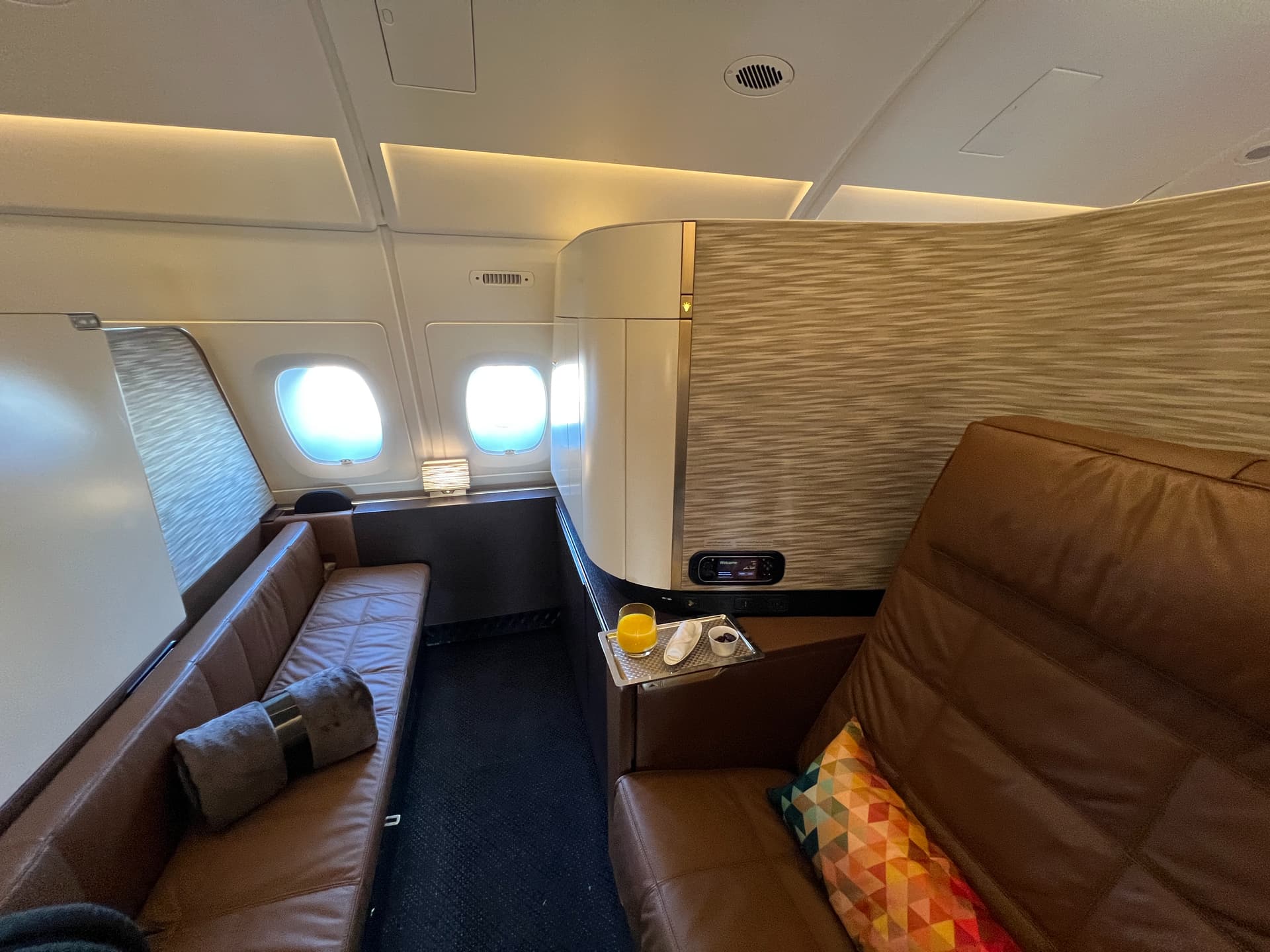 8/8上座率,747执飞,刚飞完A380空中帝王正好体验一下空中皇后 老舱私密性确实差一些,但座位有四个窗户