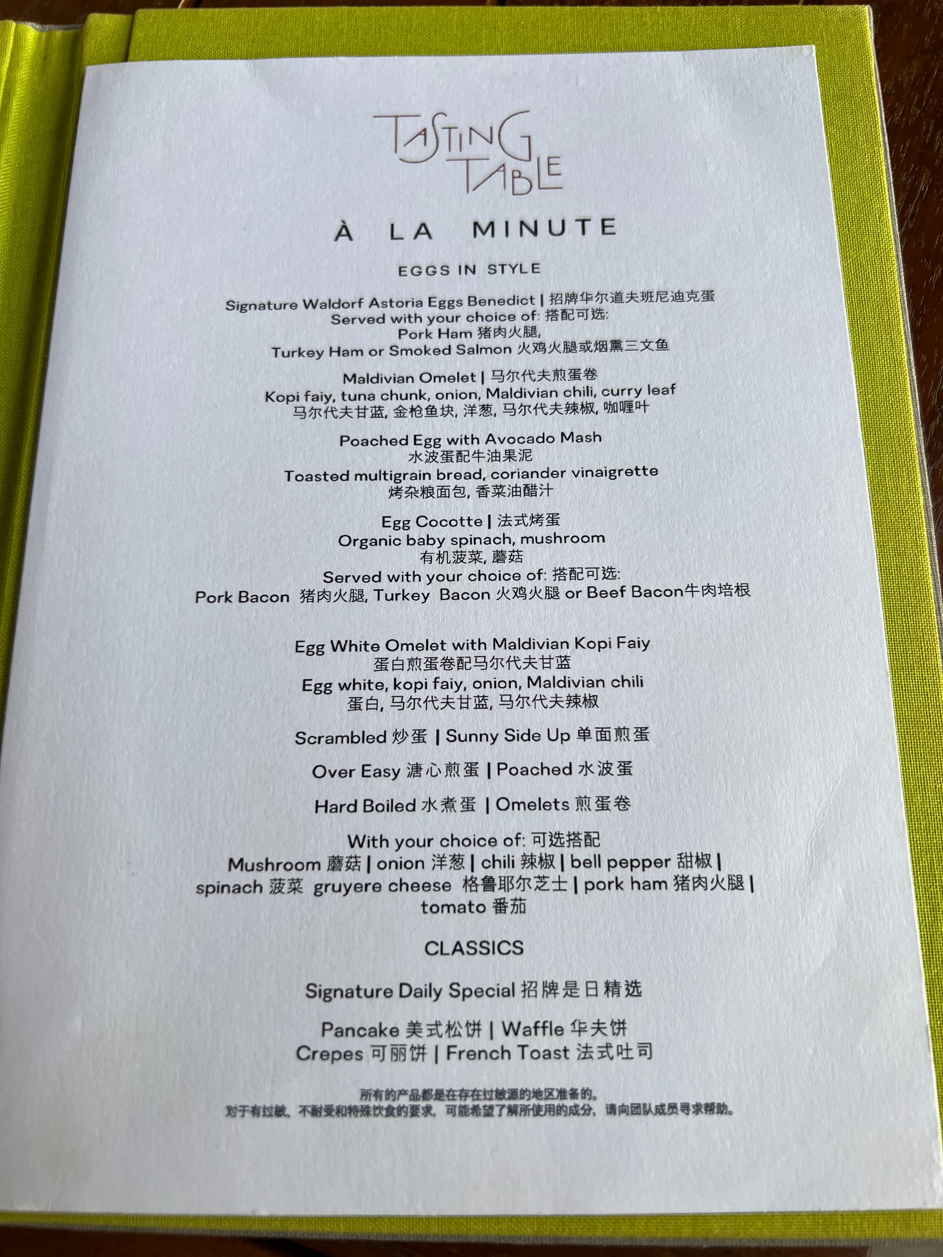 这个早餐比之后入住的所有酒店都要好很多,中式西式热食buffet都有,有中文菜单,妈妈也很喜欢