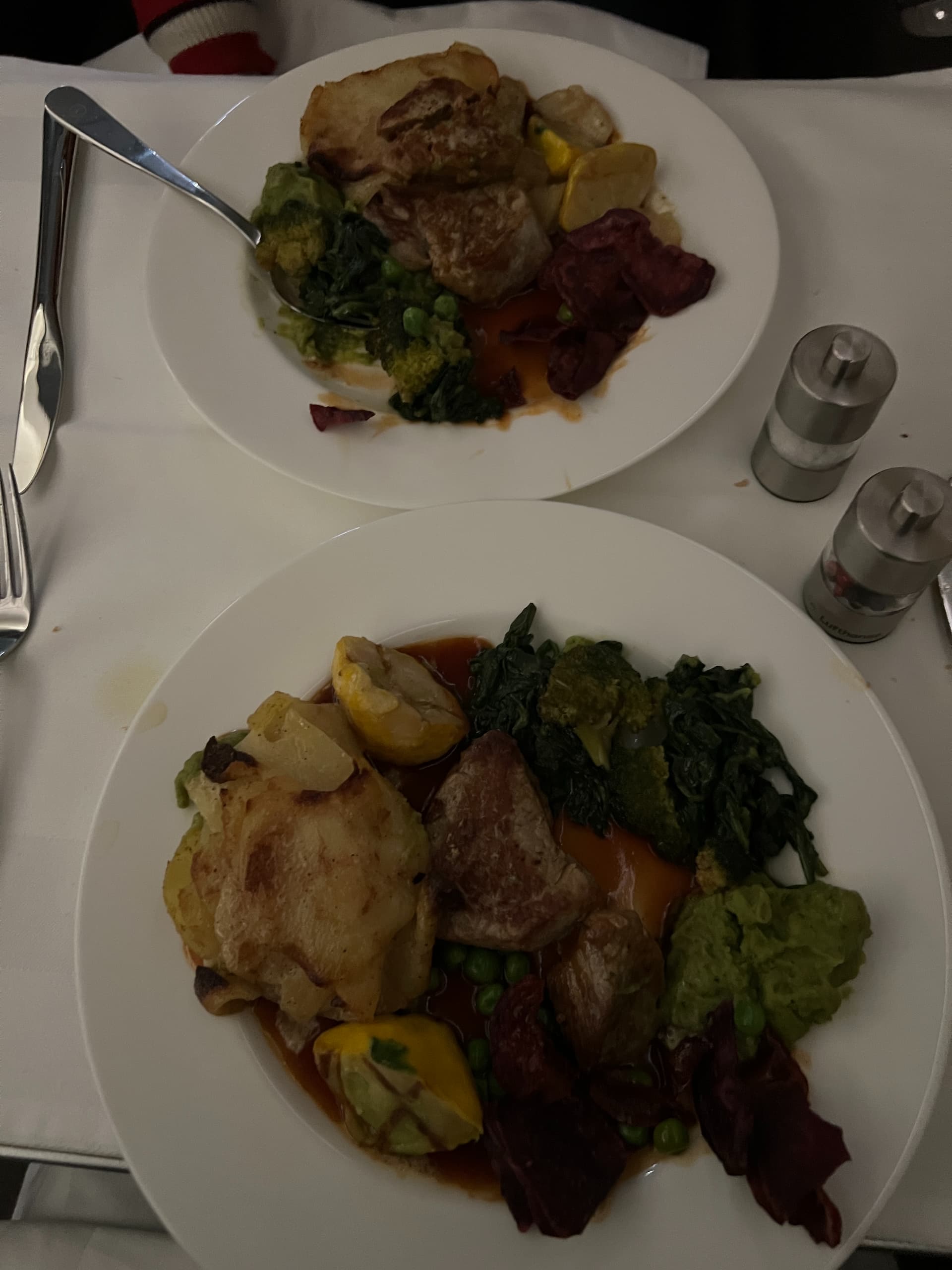 有意思的是,全舱有4人是一家挪威人,3人是中国人,还有一个单人。我们吃饭都是在第3排的座位面对面吃饭,后面吃饭聊天都快开party了吧,加上座舱长是超爱聊天的老太太,前舱估计从未如此热闹