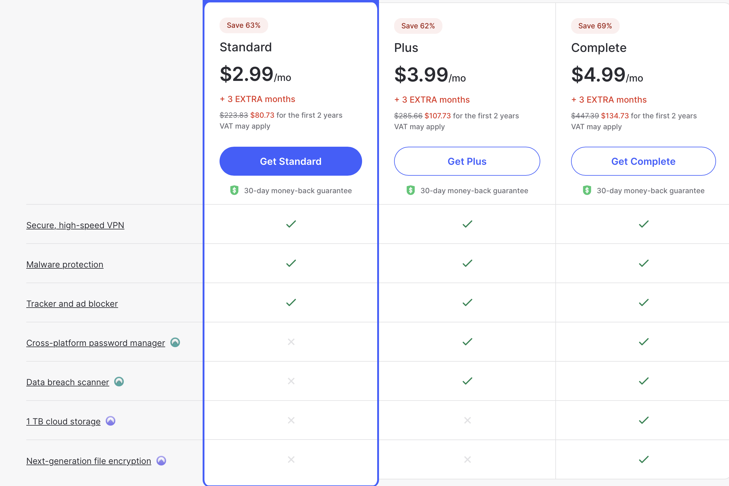 应该只有standard可以返钱。你选了以后,下一步里面可以加dedicated IP, 那个加了不会被track. NordVPN 130%倒是对的。