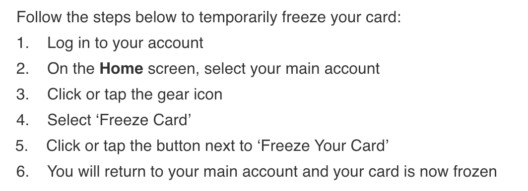 平时不用的时候怎么freeze debit card 网上查到说是选择帐户然后freeze