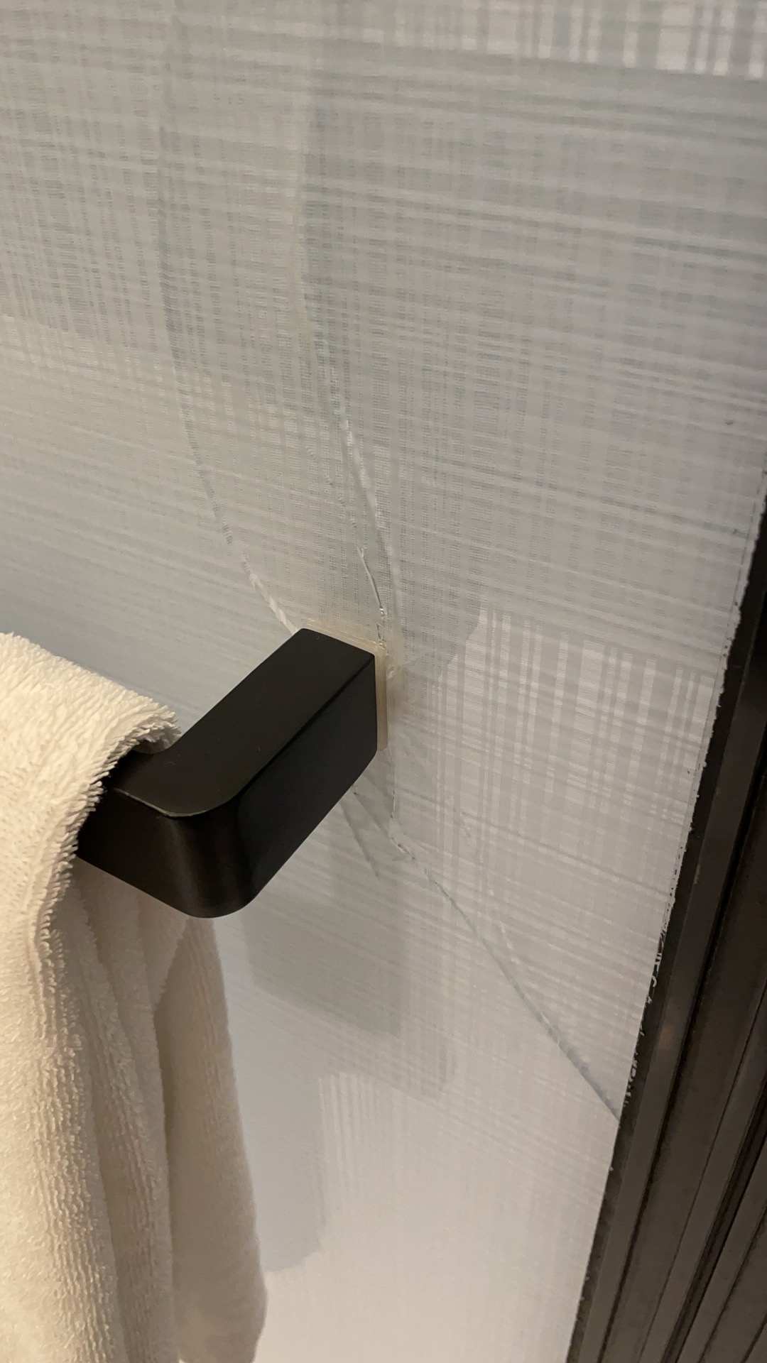 又给前台打电话 经理又来了 然后给我们说 把手脱落可以把螺丝扭上就好 那个玻璃裂缝他们工程部之前就知道 然后工程部鉴定 是可以继续使用 我是完全无法理解作为希尔顿旗下的酒店(1000一晚的价格也不便宜了)居然有可以继续使用这种说法 即使功能上不影响使用 但是这个价位了 难道不应该换掉吗。 不过当天ld也累了 加上经理的确态度非常好 我们也没有继续追究