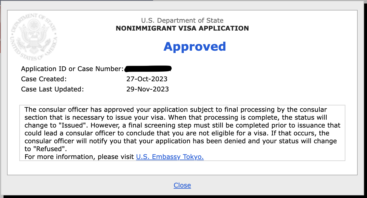 11.30 status issued, 大使馆用了我的回邮信封,邮件在赤坂邮局