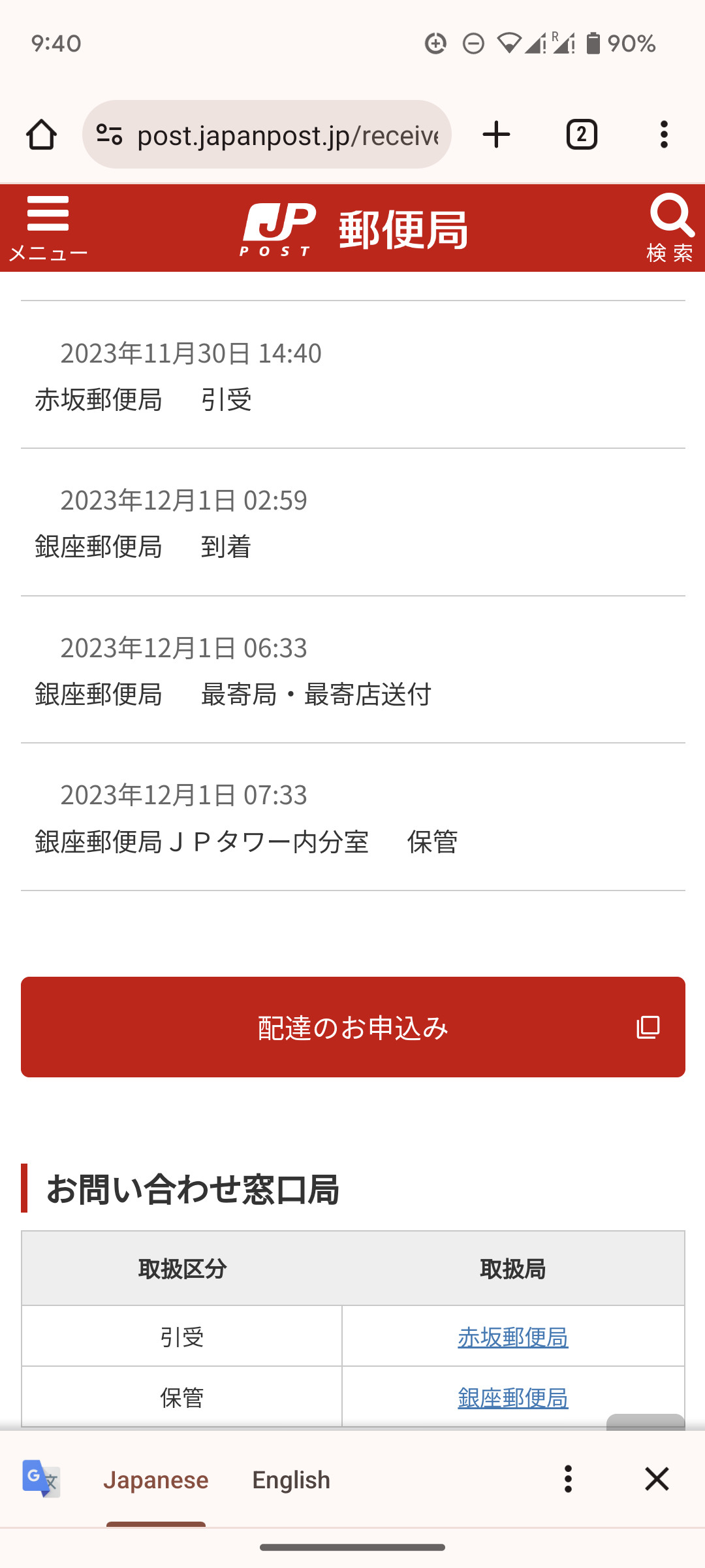 注意,如果你选择了中央邮便局,tracking显示的是银座邮便局保留,但是仔细看是它在东京站中央邮便局的分室,所以还是要去东京站,而不是银座那个邮局