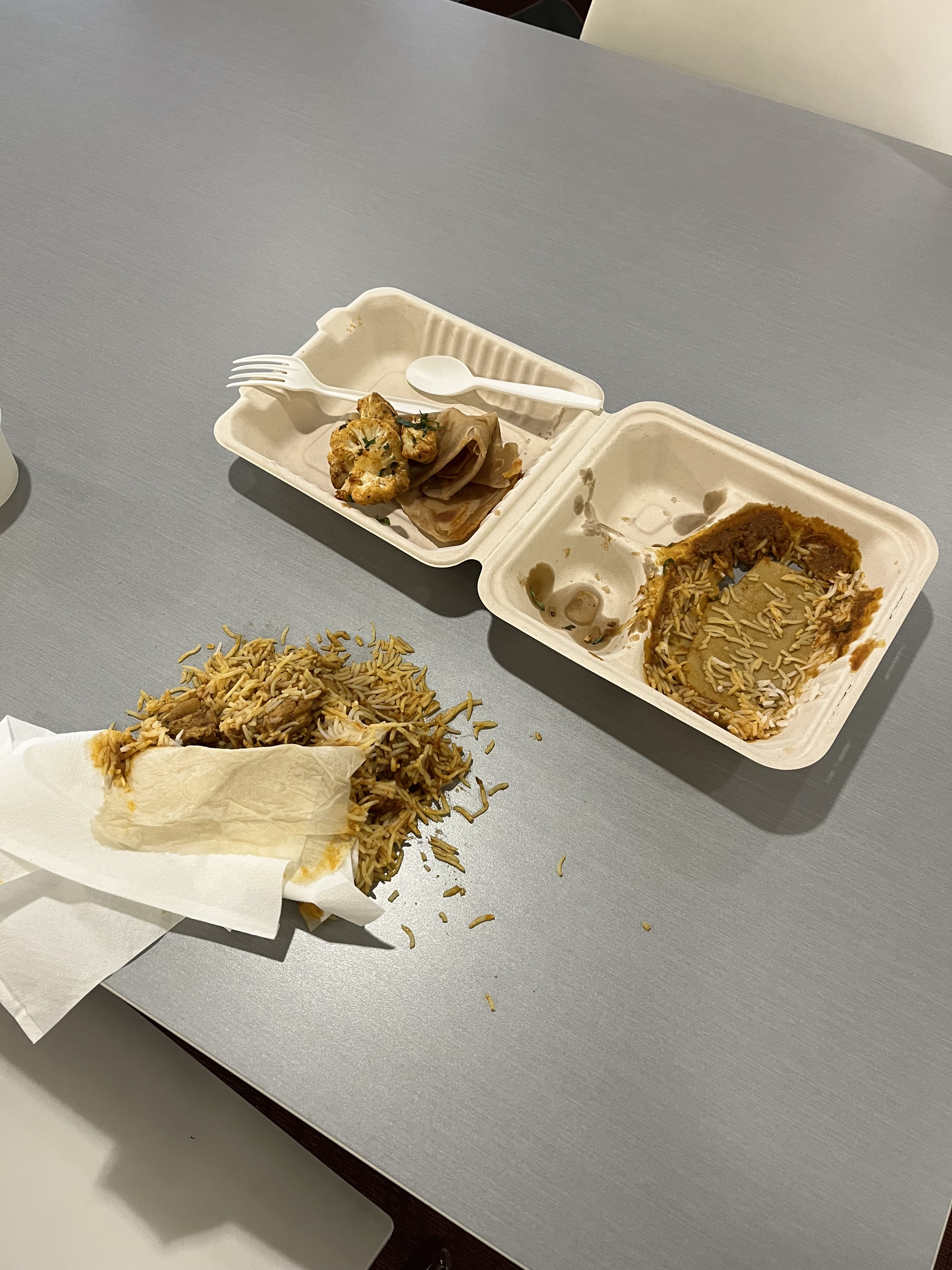 上周因为屎porject导致放假还要担心工作上的事。今天回到公司,上午好几个事情进展不顺,还有新人一直缠着问stupid question。中午食堂点了个咖喱鸡吃,还没端到桌子上,咖喱就把盒子泡烂了,直接从底下全漏出来,跑回去找食堂,想要重新要一份,结果问我要啥?一个新盒子?