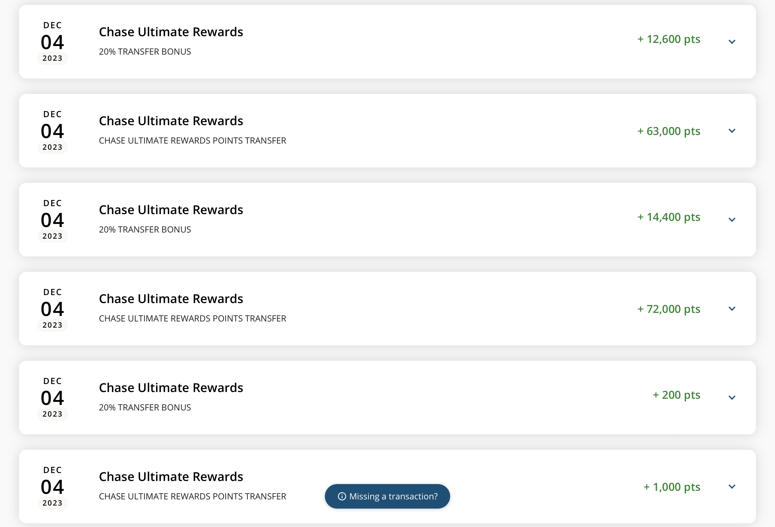 更新:P2是AC信用卡持卡人。本身chase转点50000分以上有10% bonus。目前我判断是这个10% bonus卡住了所有的bonus,因为收到邮件说"your 10% transfer bonus in on its way", “Please allow up to 7 days for the bonus points to post…”