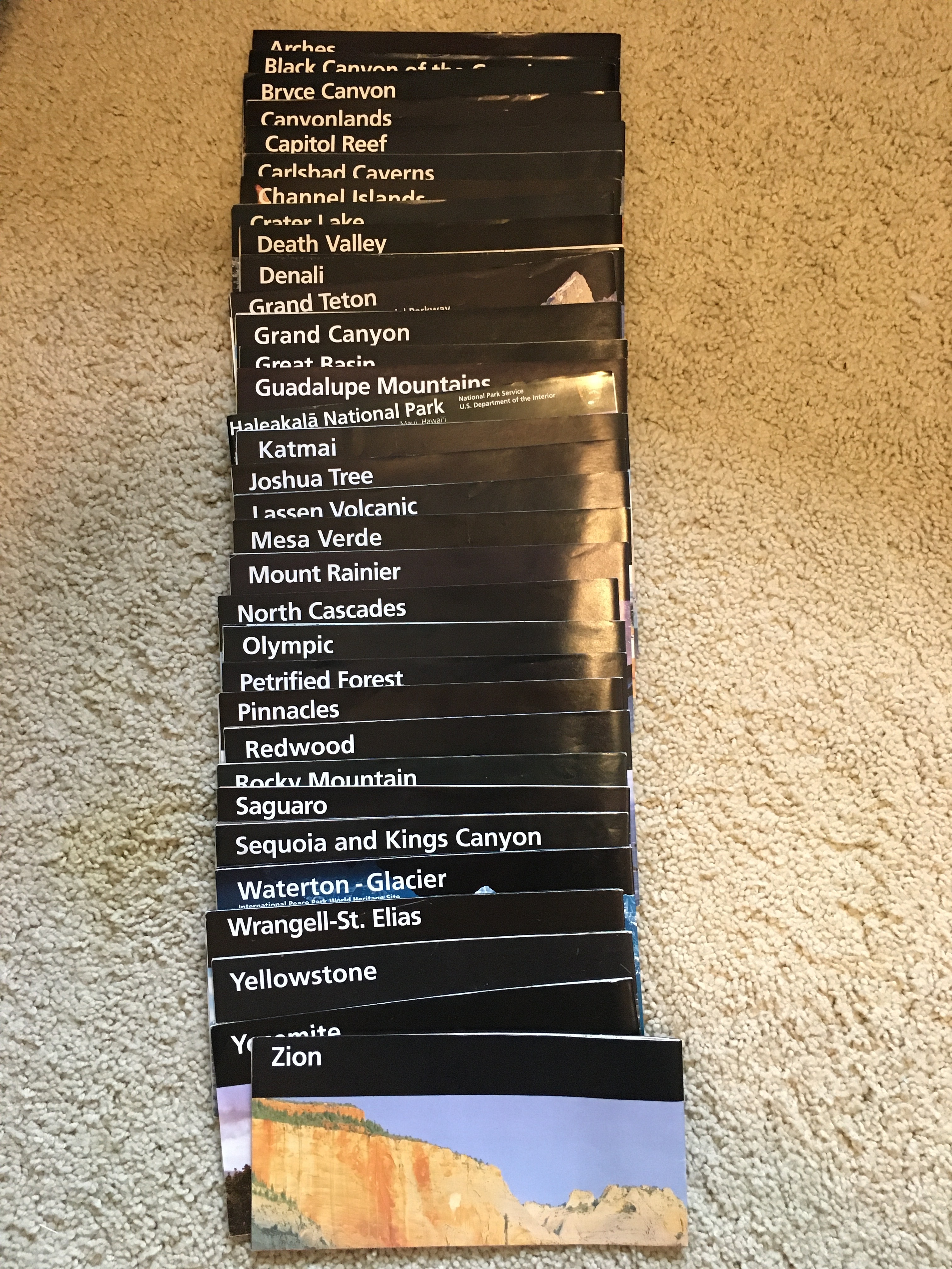 Black Canyon, Carlsbad Caverns, Grand Teton, Joshua Tree, Larsen Volcanic, Saguaro, Sequoia / Kings Canyon, White Sands.