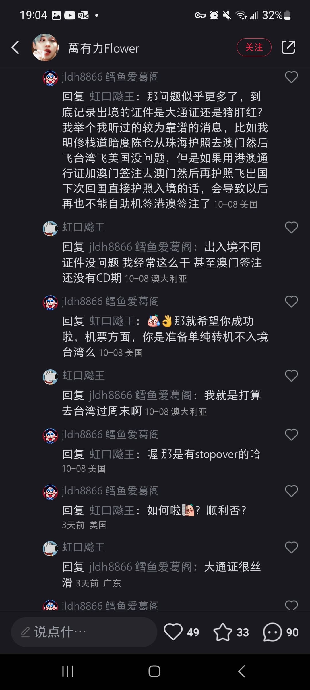 如此就能拿大通证+入台证直接搭乘大陆赴台航班了,这个小哥是去台湾旅游后返回澳大利亚;可信度搂主不予置评,不过那几天追踪他的ip变化是符合他的描述的,感兴趣的可以自己去试着操作一下。
