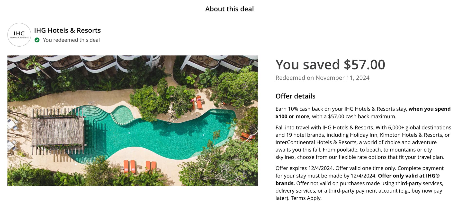 intercontinental的,实测其他IHG品牌的酒店消费不触发。