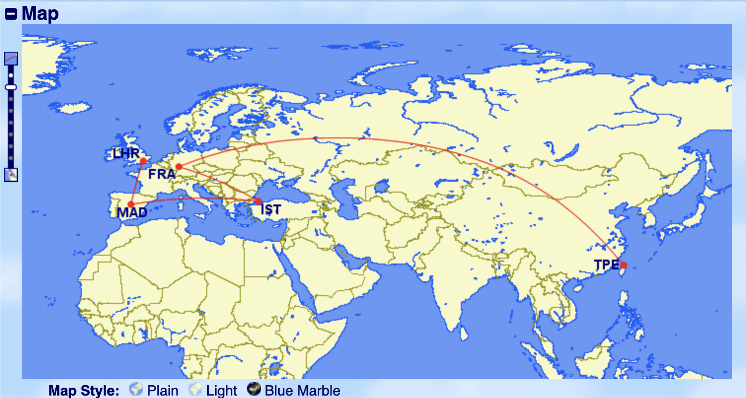 我报价IST-(TK)-ATH-(LH)-FRA-(CI)-TPE,因为真的很想坐华航(被拒绝,说不能超过1个stopover)