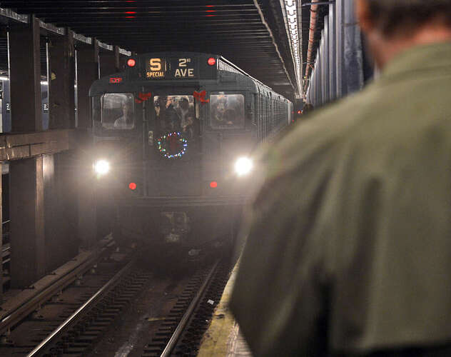 The Holiday Nostalgia Train departs 2nd Avenue on the uptown F line in Lower Manhattan at: