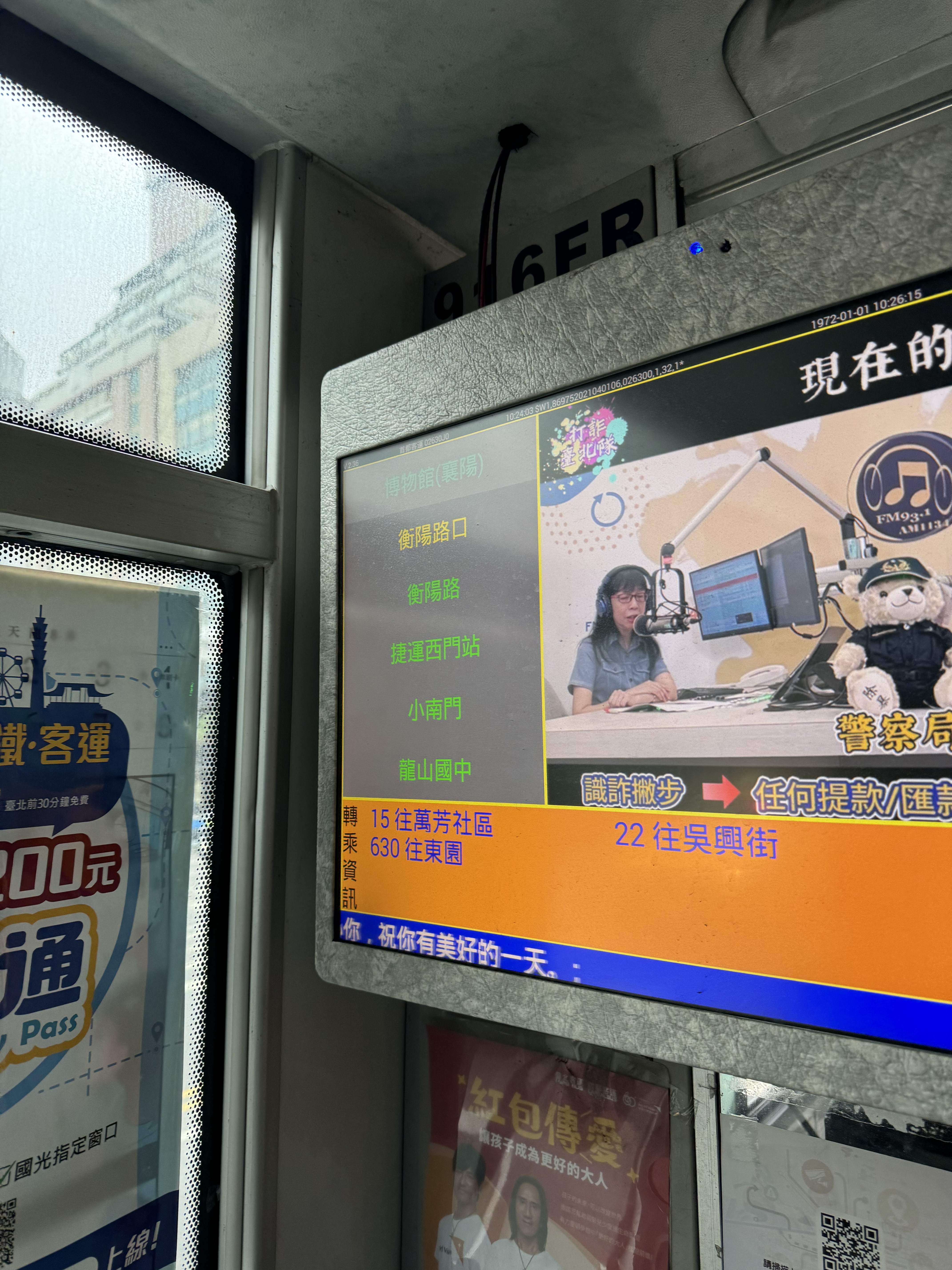需要注意的是台北的公车投币是15元,不设找零;悠游卡的话记得上下车都要刷卡。其实买普通的悠游卡就好,我为了去找个性悠游卡跑到西门町,买了个阿尼亚的挂扣,结果卡费就要350,太贵了。