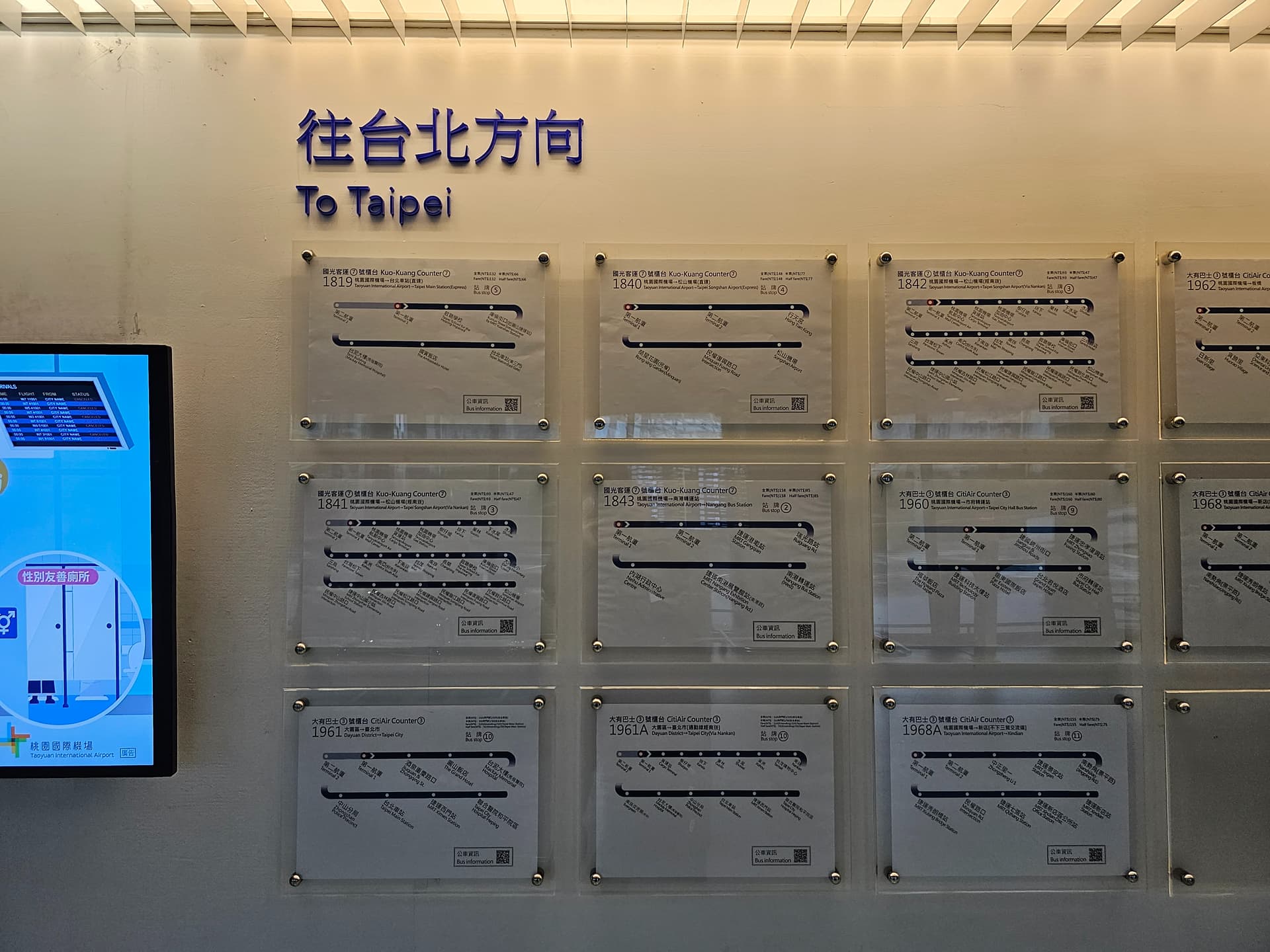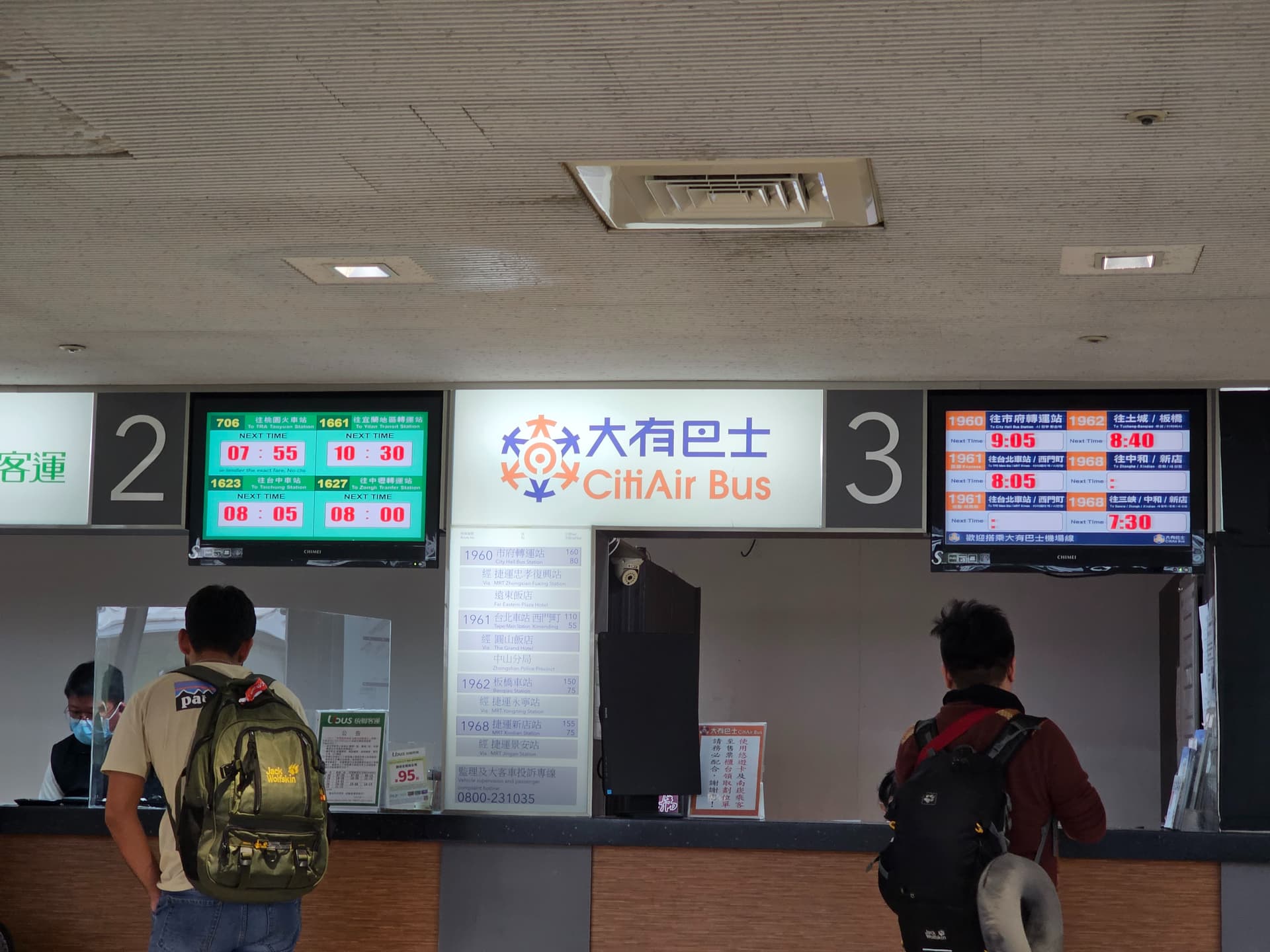 看了拉老师的攻略本来准备也搭乘机场捷运进城,但Google Map一查发现最方便的居然是机场开往市区的巴士,进城当场转公交总共一个小时多就能到,坐捷运还得先去台北车站再转车。大巴在到达层下一楼买票发车,由不同的公司担当运行。