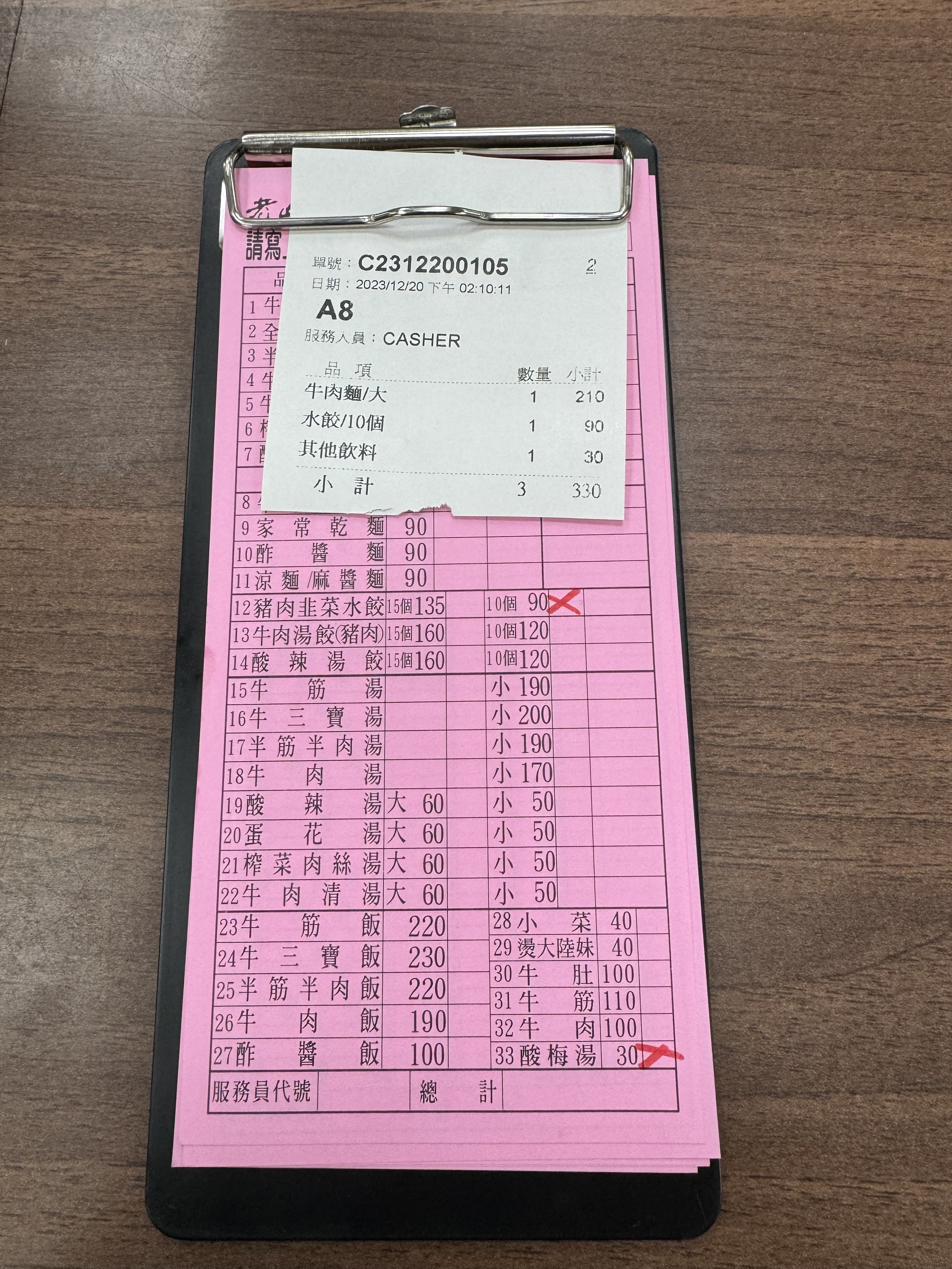 结账的时候和大姐聊到这家店为何叫做“老山东牛肉面”,大姐很健谈,说这家店开了70多年了,49年的时候由山东老板开的,直到现在老板也是山东人。可惜因为“山东”作为地名不能注册商标,他们只能另找个名字注册,店名还是叫做“老山东”。大姐还说因为做的比较火导致其他地方争相模仿,甚至花莲都有花莲人开起了“老山东牛肉面”