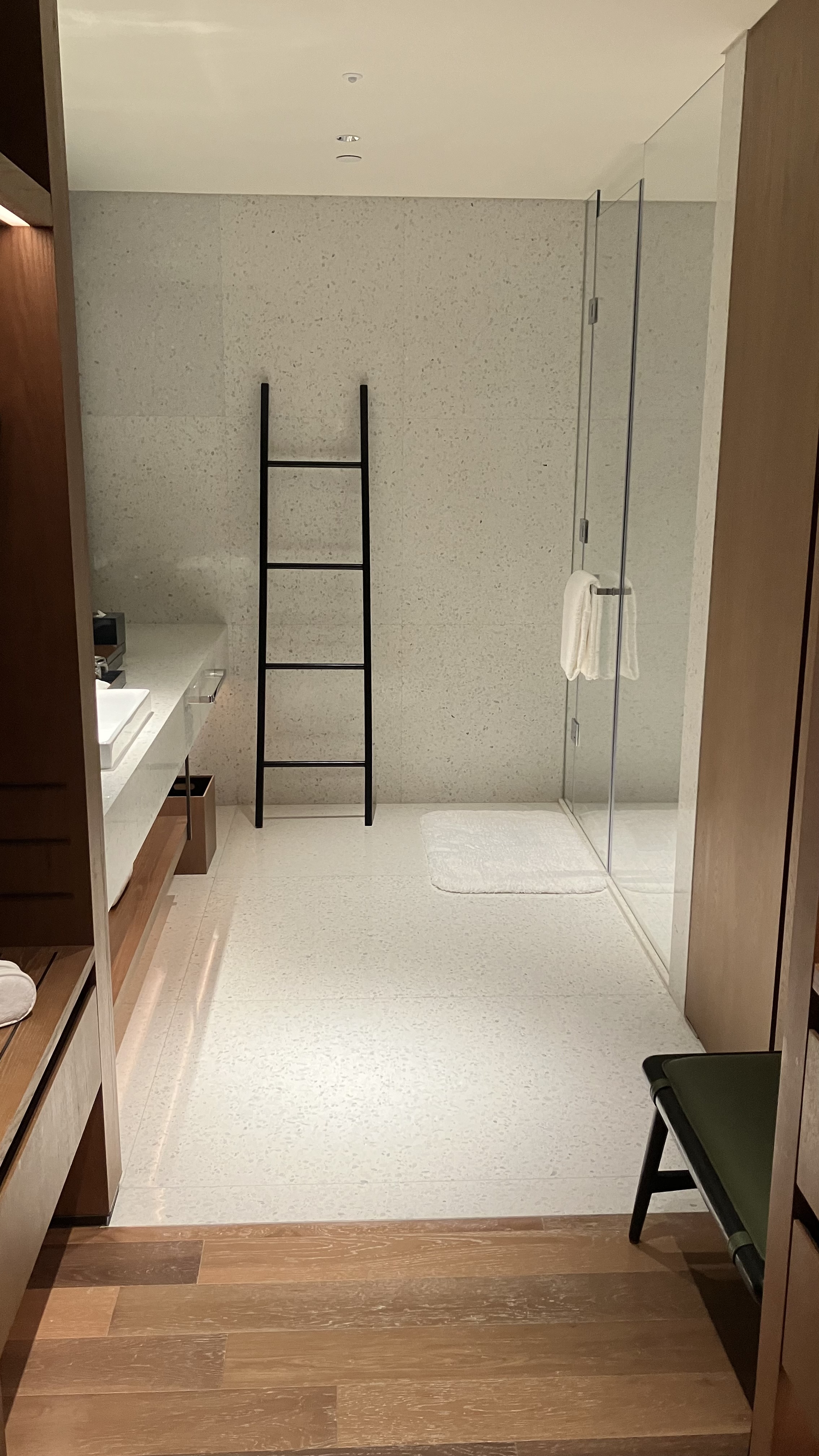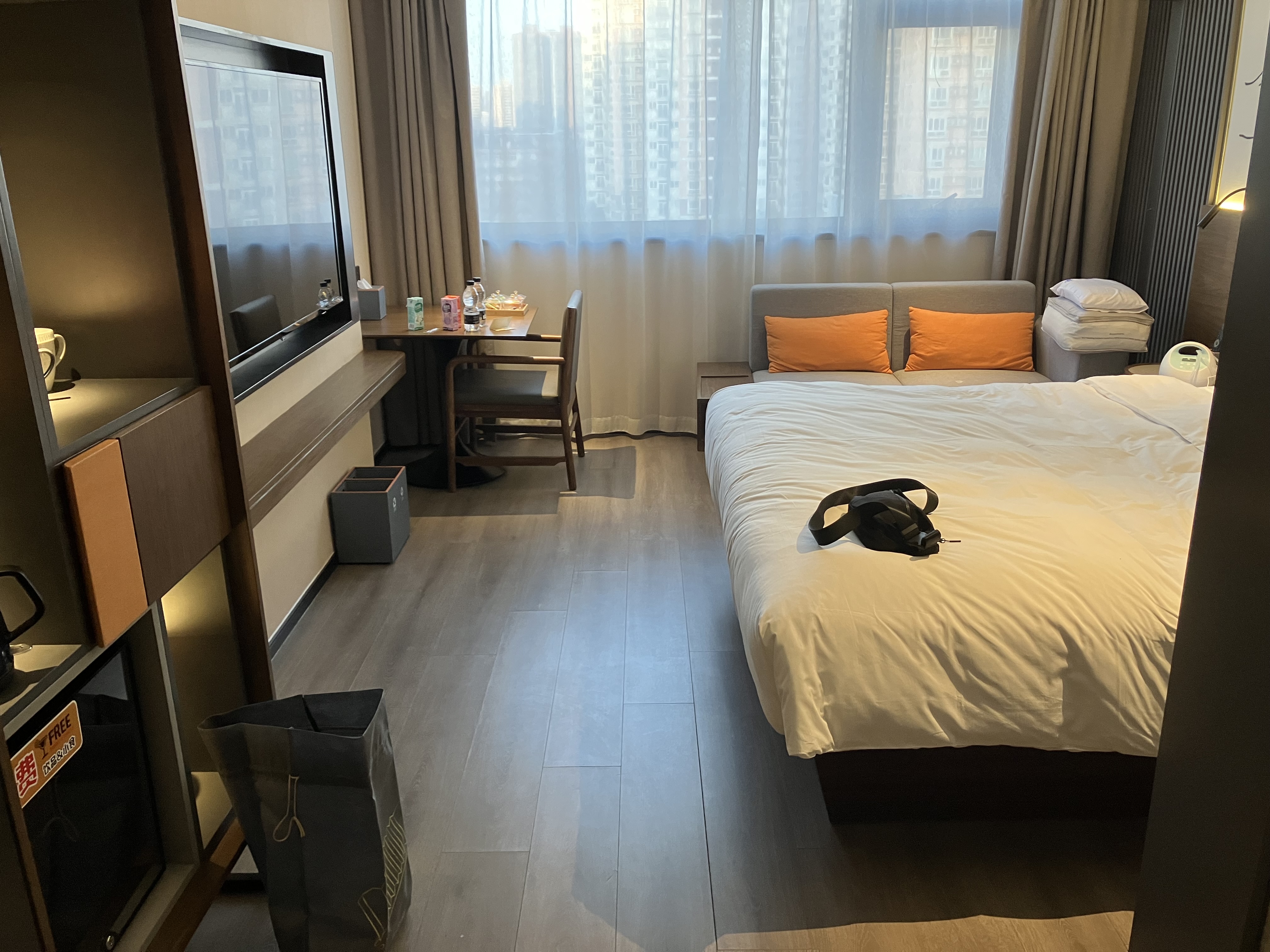 是我住过最新的酒店了,12.15开业,这个季节客流不高,升房很大方。入住前几天收到前台经理全英文欢迎邮件,挂壁探索者回复请求升房,经理二话不说升到最高级的非套——虽然酒店介绍里有套房但订房选项里并没有,不知道是不是还没有开放预定。不过经理问了一声我是不是一定要双床(答曰是),而套房只有大床。