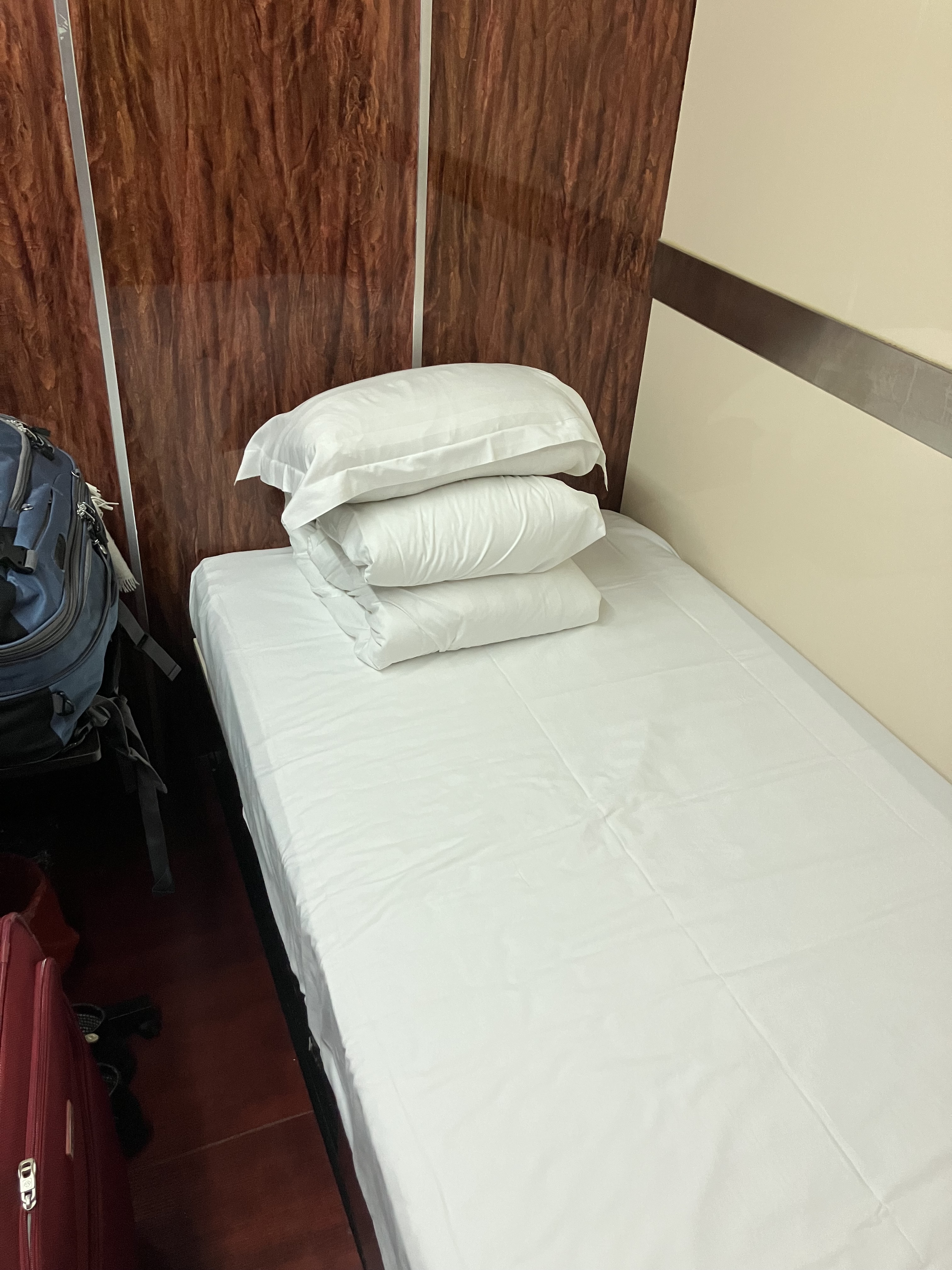 到了ICN彻底打消逛免税店的心,在韩亚休息室找了个单人间躺到下一程飞机,薅下来了枕头被子拖鞋齐齐派上用场。
