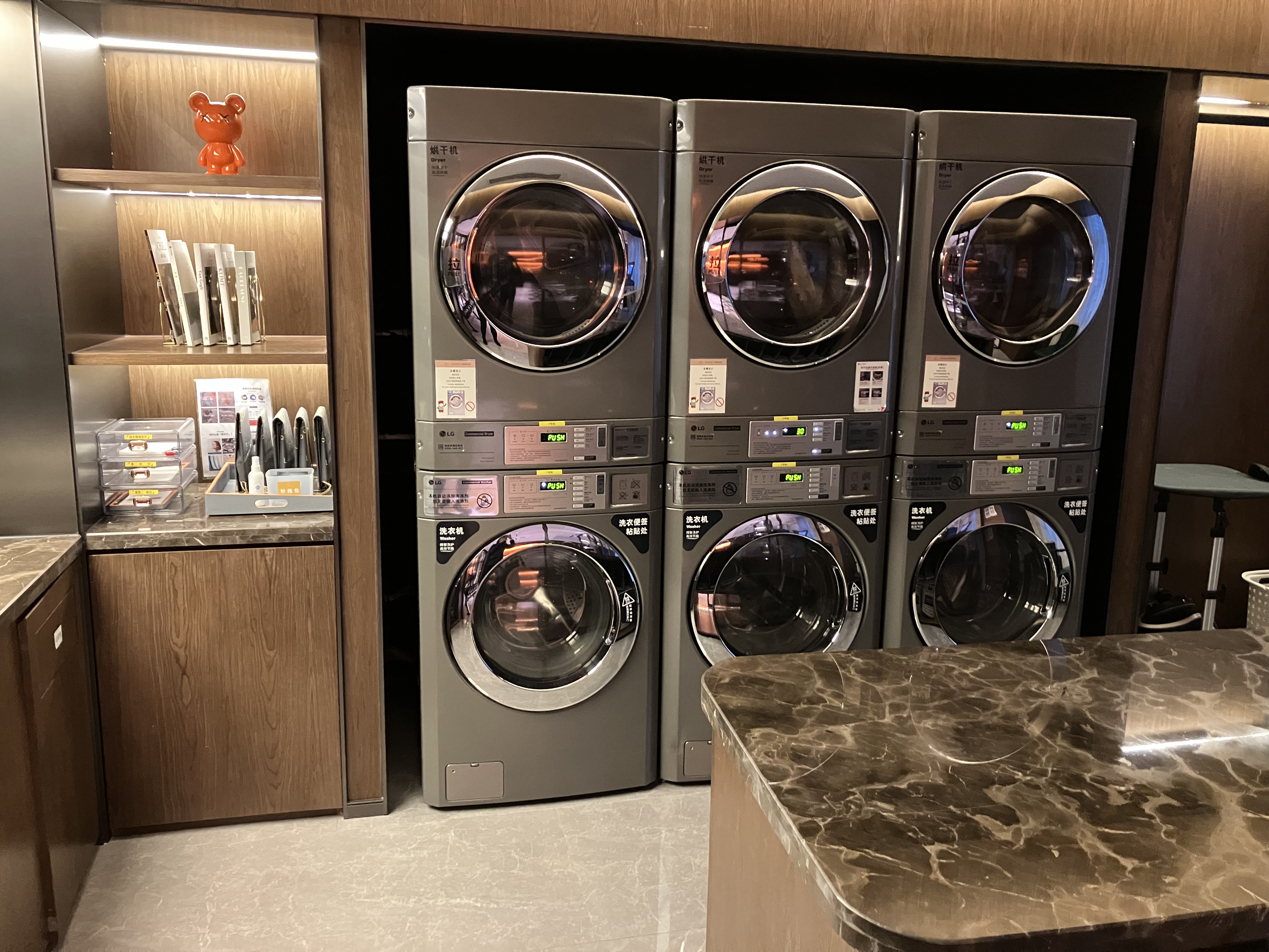 健身房旁边有自助洗衣房,一路风尘仆仆换下来的衣服当天洗净烘干。