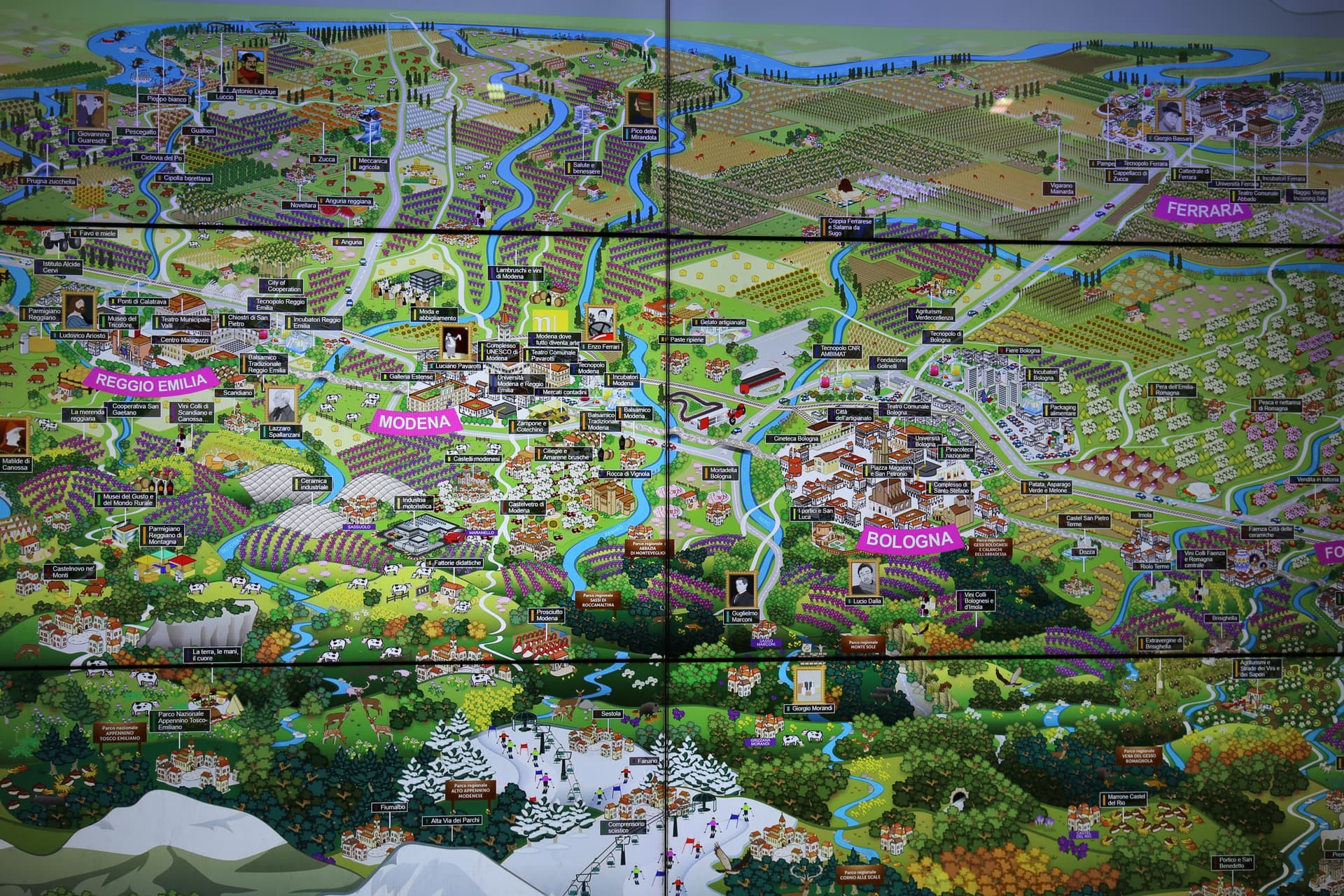 我唯一一次路过博洛尼亚,在火车站内拍摄的博洛尼亚和周边城市景点的宣传地图
