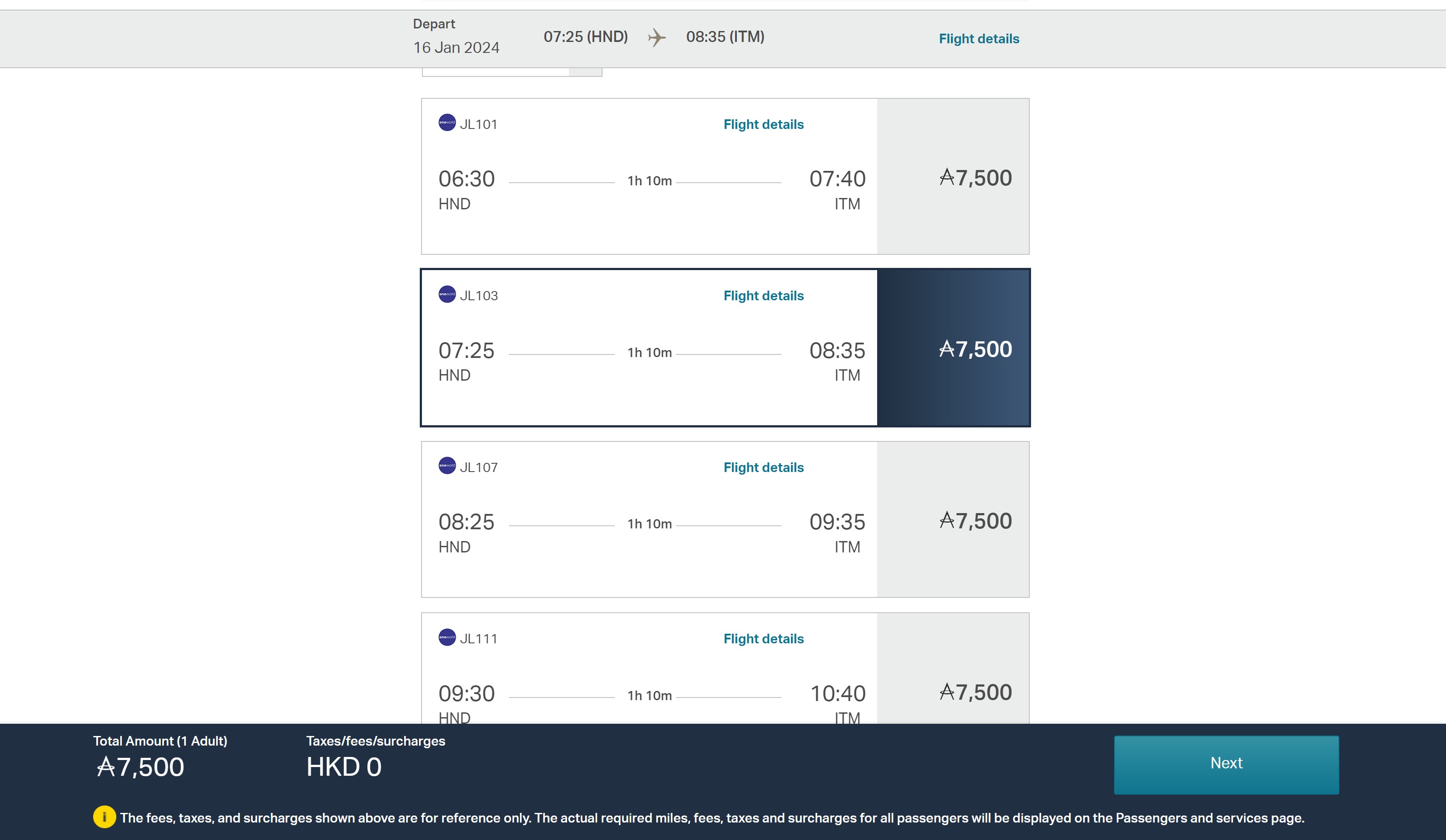 不过也有少部分伙伴航线没有这个surcharge,比如HND-ITM. 如果把HND换成NRT,或者ITM换成KIX,价格都会变成10000
