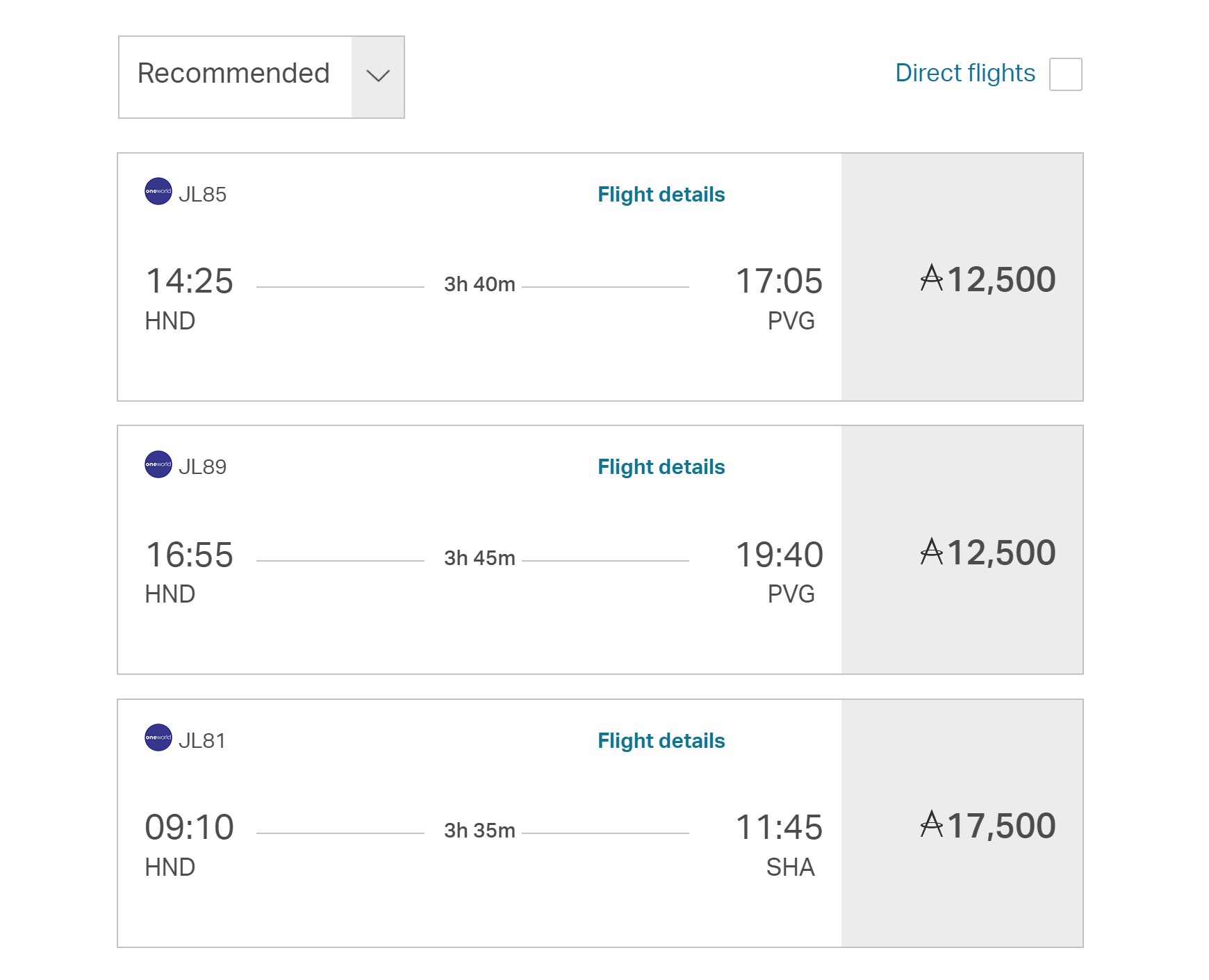 国际线同样也有漏网之鱼,比如HND-PVG,换成SHA就不行