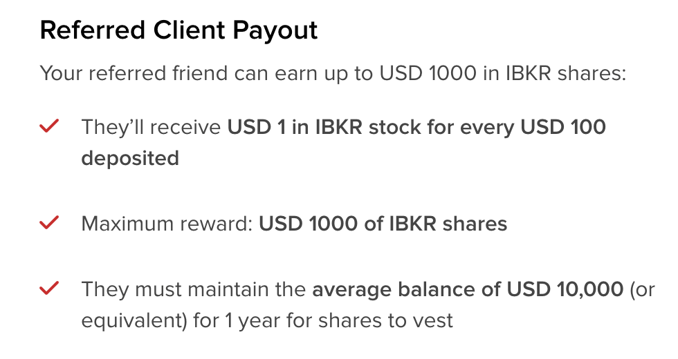 Interactive Brokers (IBKR) refer 出来的开户奖励是 up to $1,000;refer 的人可以获得 $200 per referral。现在论坛来一轮福利大放送,大家可以来这里放 IBKR $1,000 offer refer 链接!
