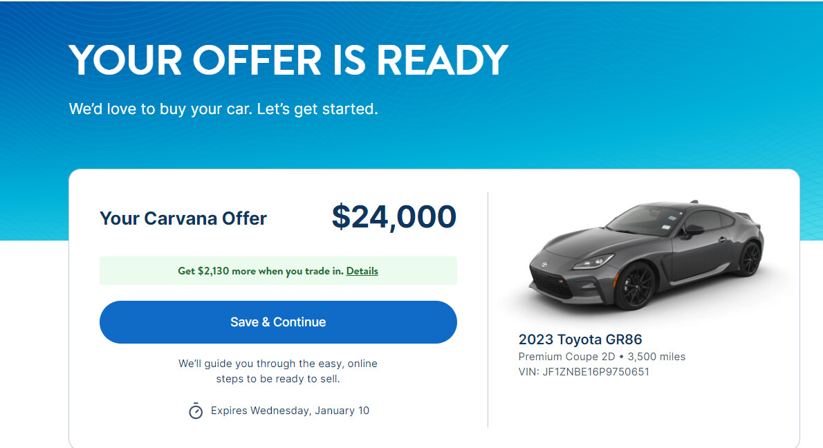 二手GR86 收车价掉了很多, 2023 MT premium 半年前carvana $34k 收, 现在$27k 收 ![]()