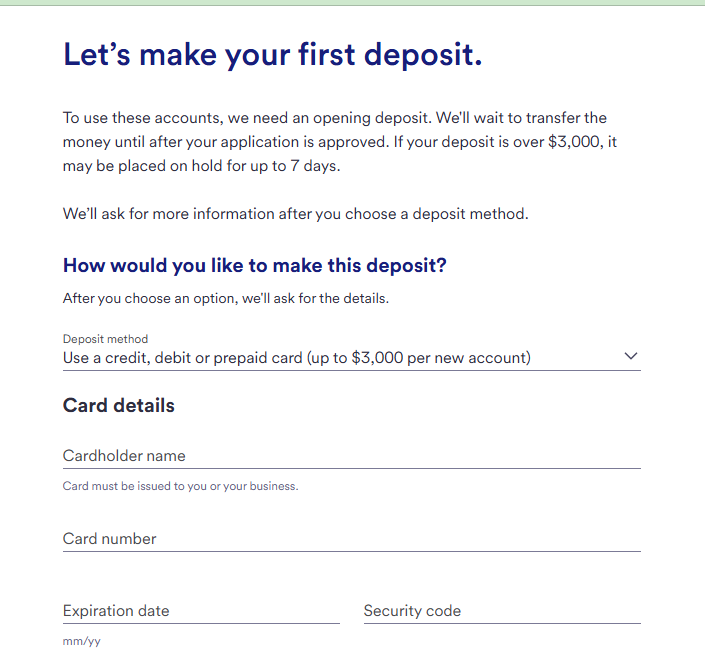 非常尴尬,因为被review需要交材料,但是材料必须要先make first deposit。First deposit又只能填一张卡。。。完全卡住了