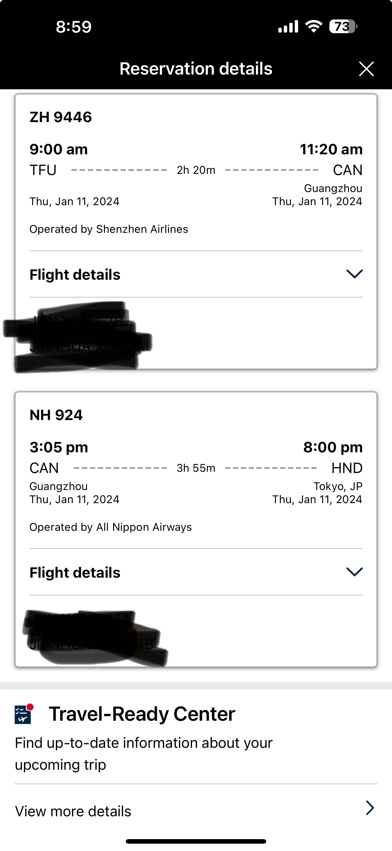 用ua里程给父母出的联程票,父母今天值机的时候被告知深航和ana不能直挂。