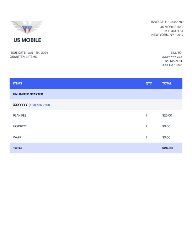 US Mobile does. It is a fairly simple one page pdf but has the logo, usm address, date, payment status, invoice number, your name and address, line number, what plan and charges and final amount due.