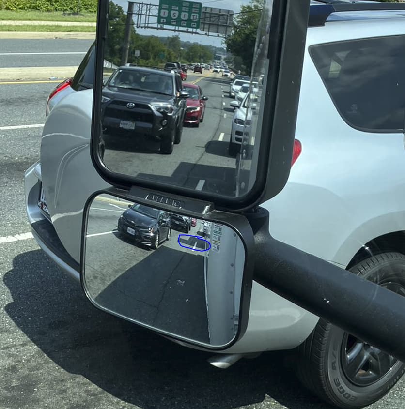 换lane 挂了trailer 镜子就没法判断距离了 只能用影子判断车距 如下图,