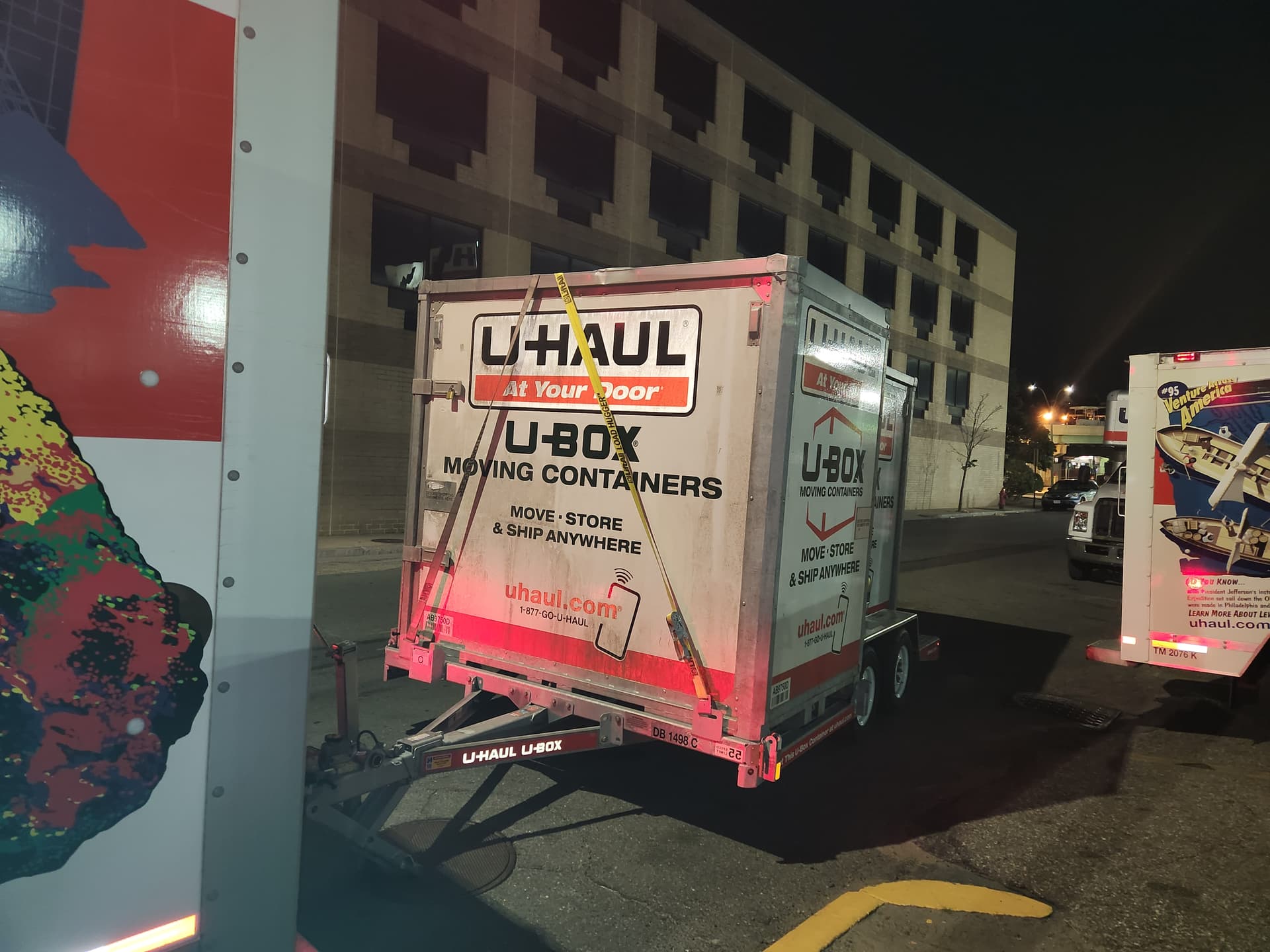 一口气开了14小时 到地方凌晨1点了, trailer卸掉 uhual里面是开不进去的 boston不是一般的挤 就跟送快递一样 拍了照片就可以走了