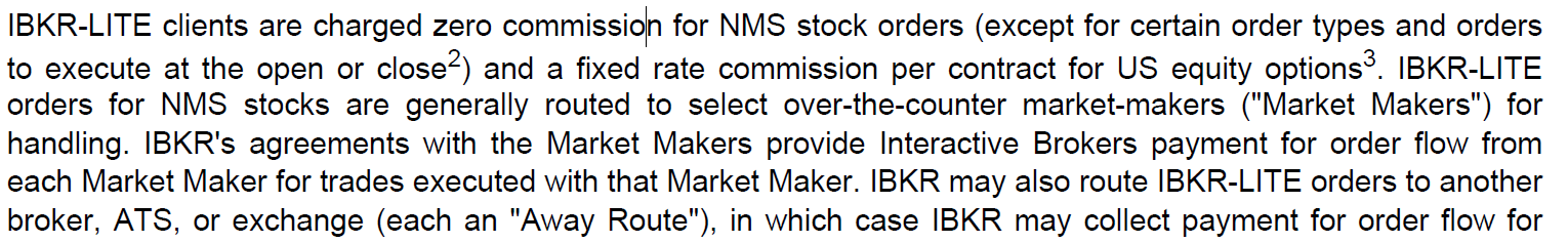 的确Schwab是这样的(感谢指正),但是 IBKR Lite 的是明确所有免费 trade 全部默认送付费 market maker,所以感觉和 Robinhood 是一个路子