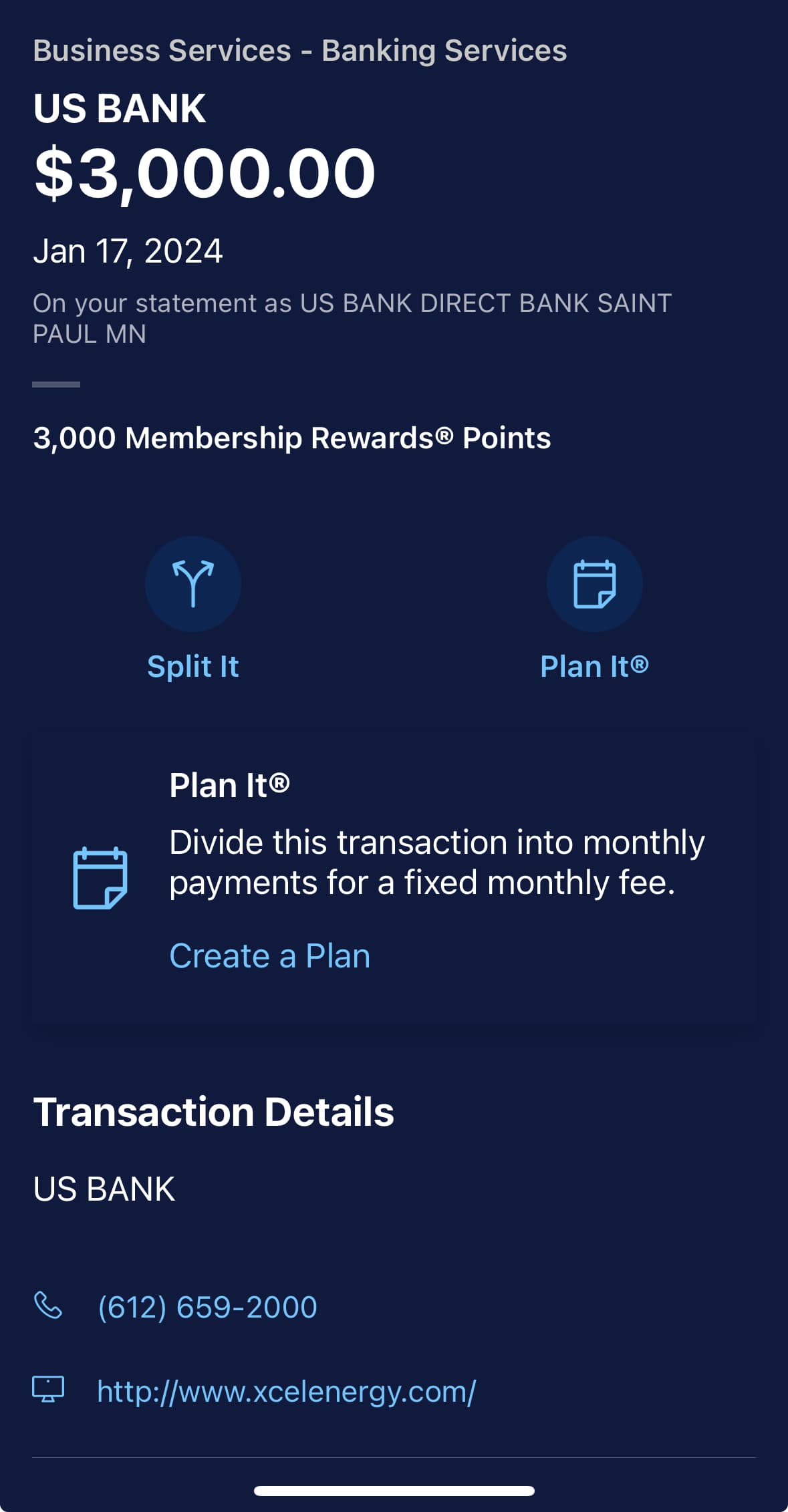 另外再报个US Bank Checking account initial deposit的dp,上限$3,000, 用AmEx Plat存了$3,000,算开卡消费,给了3,000MR