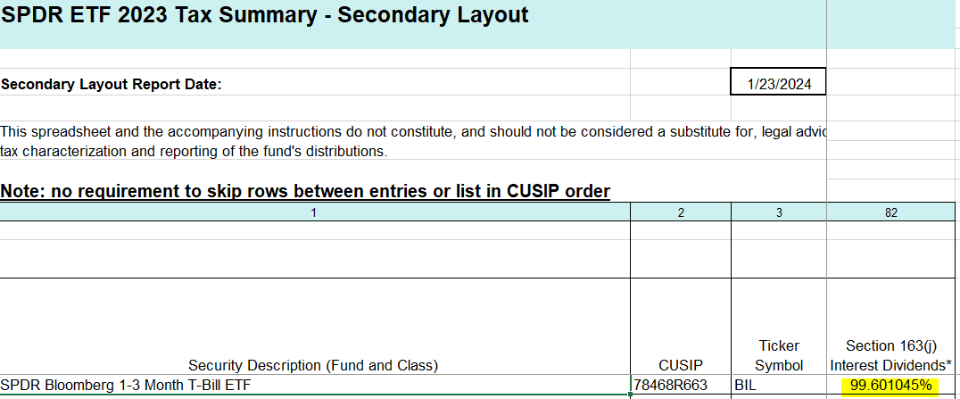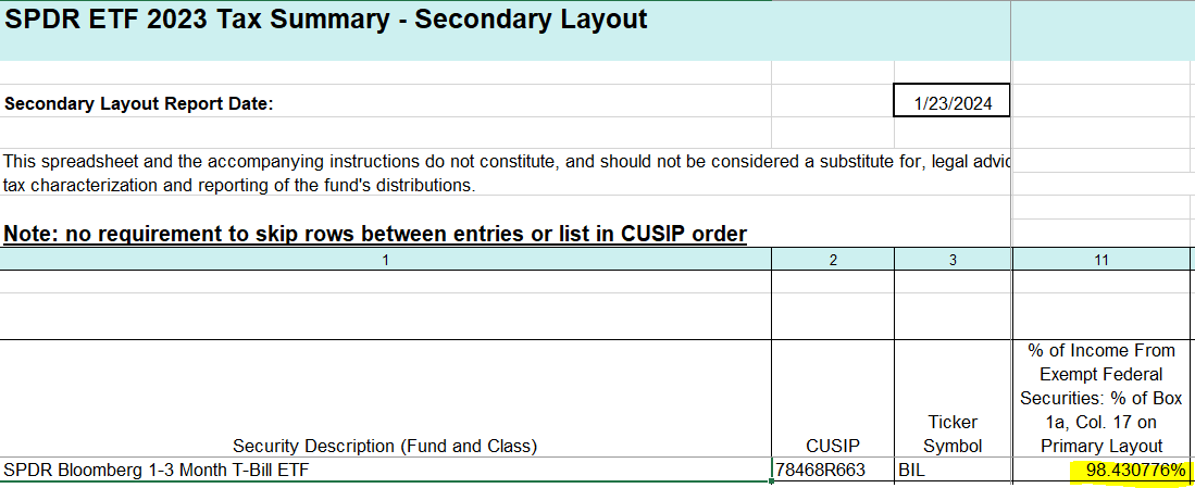多谢楼主提醒。看了下SPDR Bloomberg 1-3 Month T-Bill ETF(BIL), 99.6%的国债,输入后加州州税省了1千大洋。