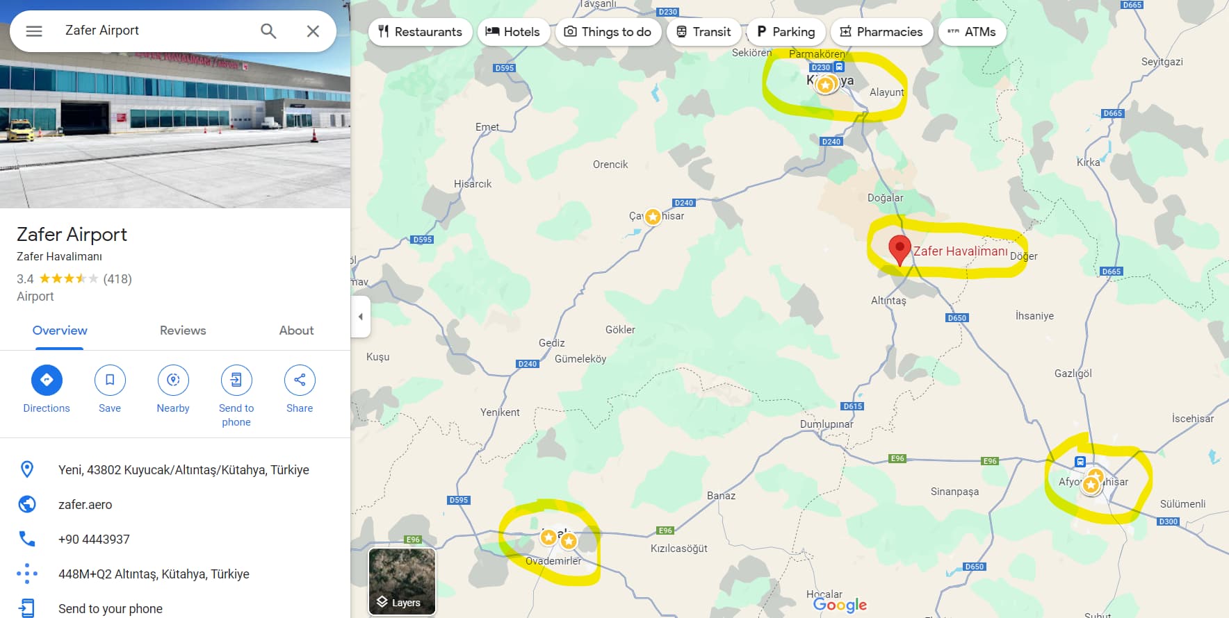 (4) 因为机场偏僻,航线少,离省城远,这个机场被土耳其网友疯狂吐槽,Google Maps 网评 3.4/5,说是政府浪费税钱搞的破玩意。