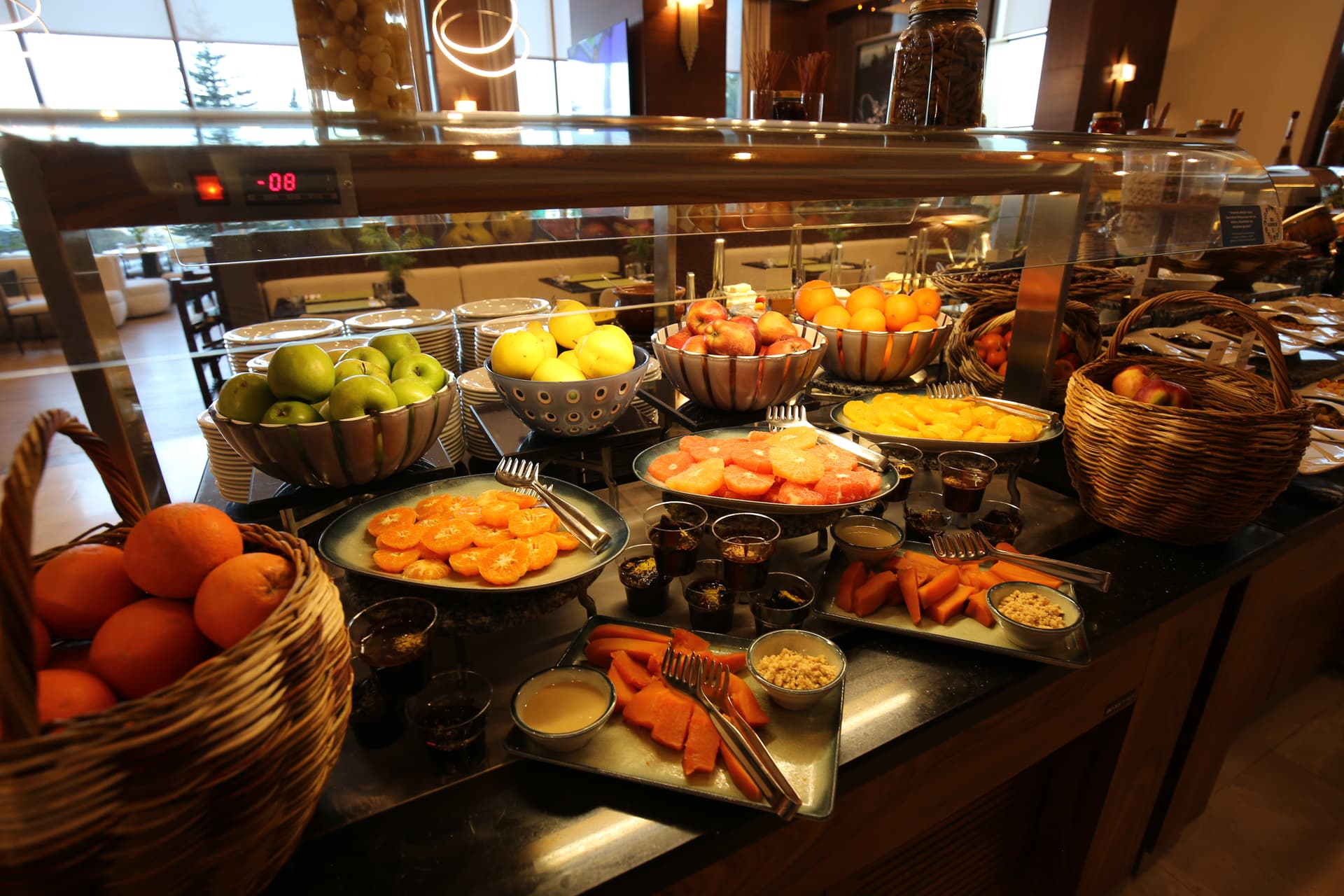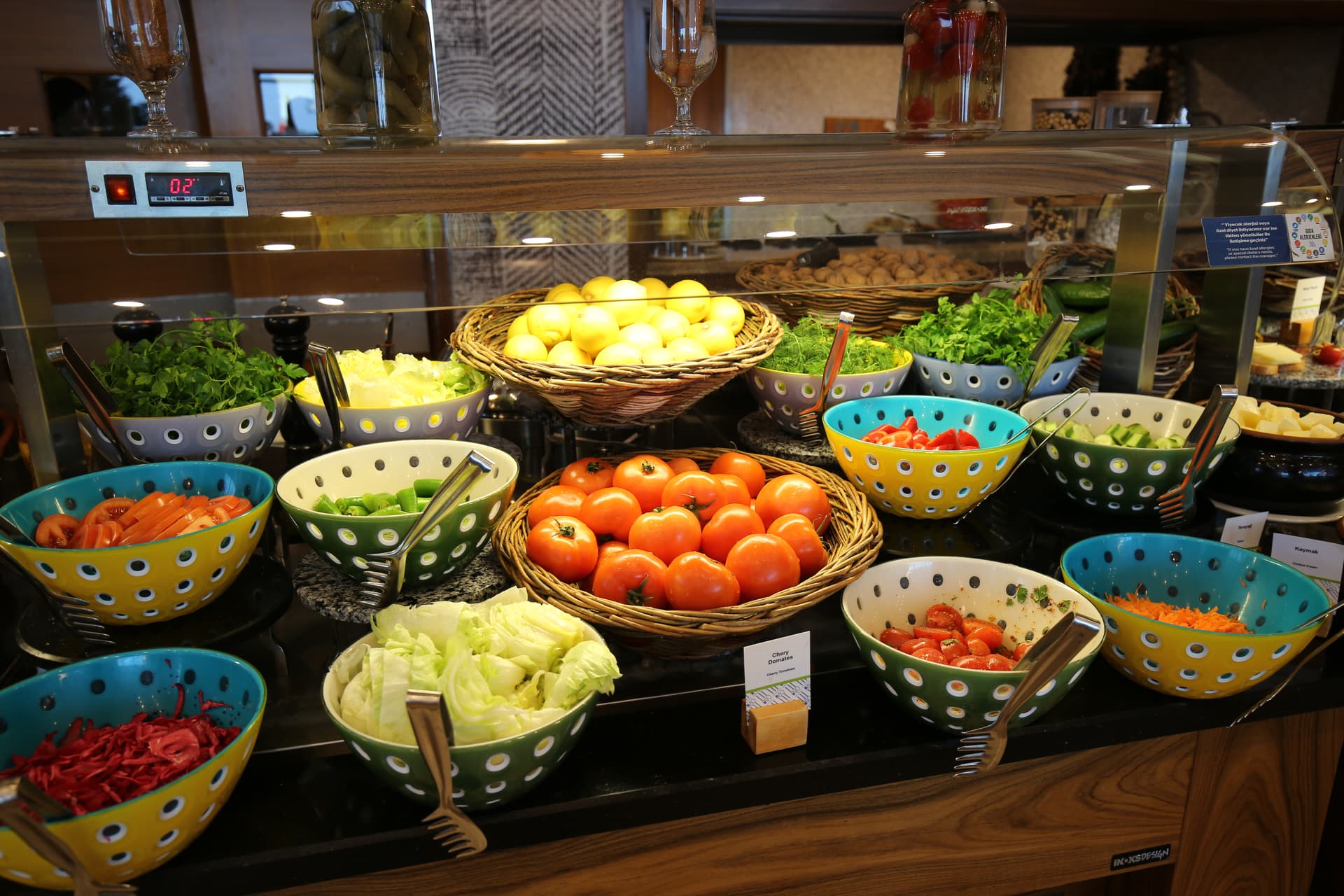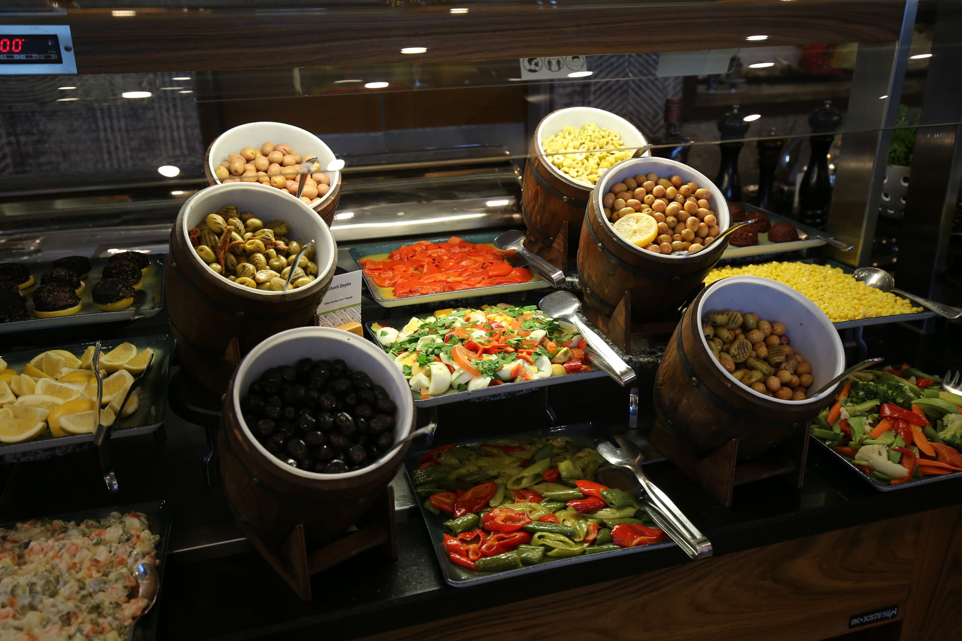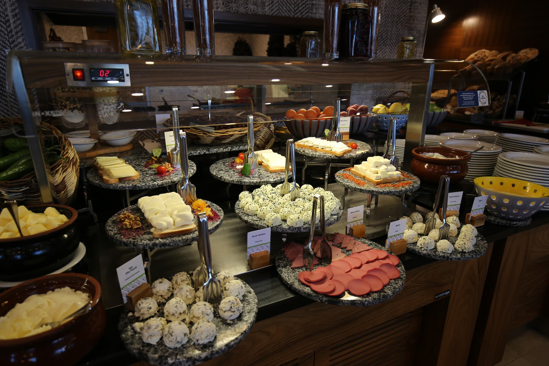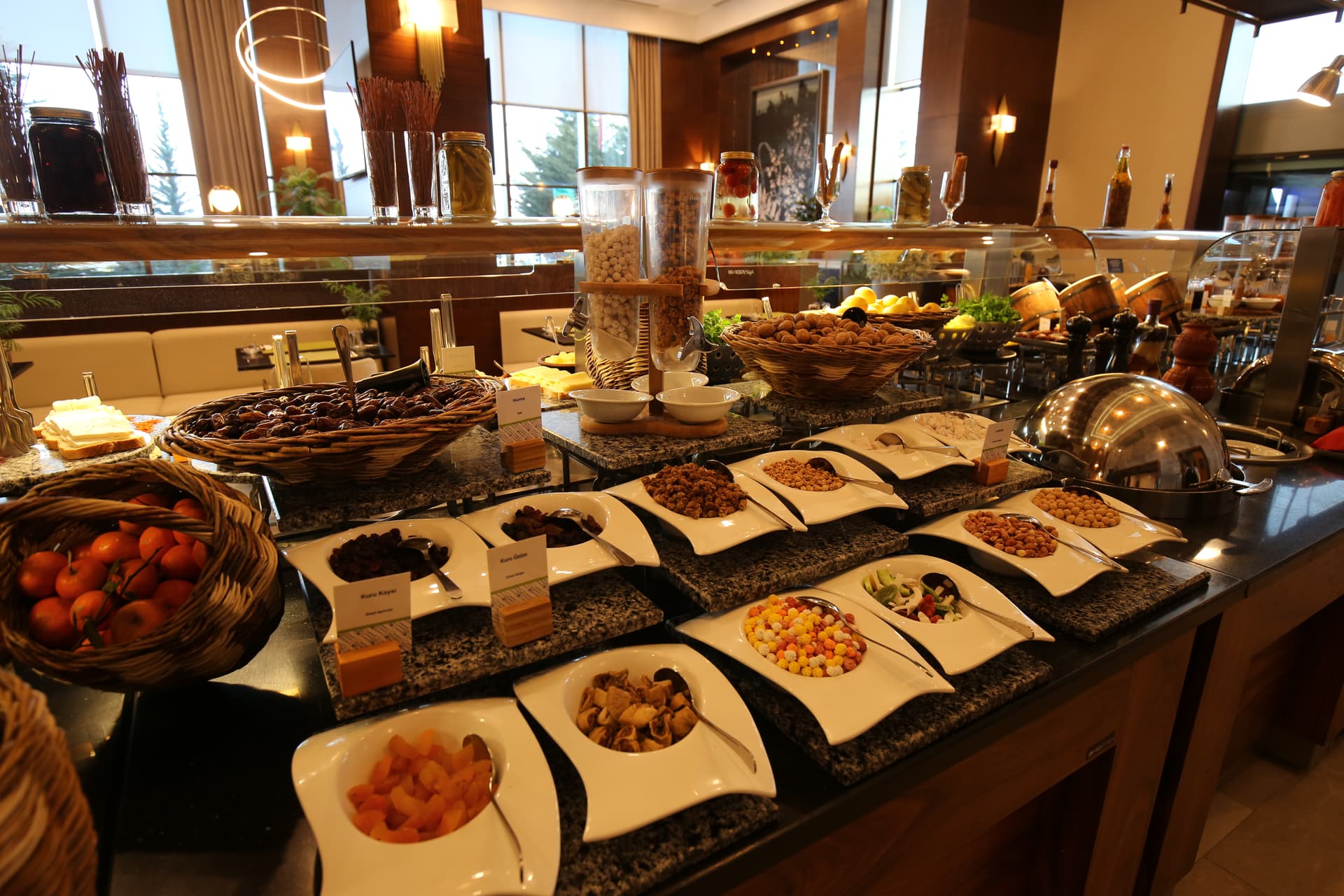 早餐 - 楼上提到,凡城是土耳其早餐的发源地,这里的早餐种类繁多 (pun intended)。一般来凡城的游客、背包客都会特地品尝本地的早餐餐厅。由于水钻,我可以无成本在这里蹭早餐。希尔顿的早餐也没让我失望。早餐的选择有不少是当地特色:番茄蛋 (menemen)、麦子酱、特浓牛乳配蜂蜜 (balkaymak)、番茄糊、土耳其汤、软糖、枣子、杏干、还有令人眼花缭乱的奶酪和橄榄。沙拉的选择也很丰富。