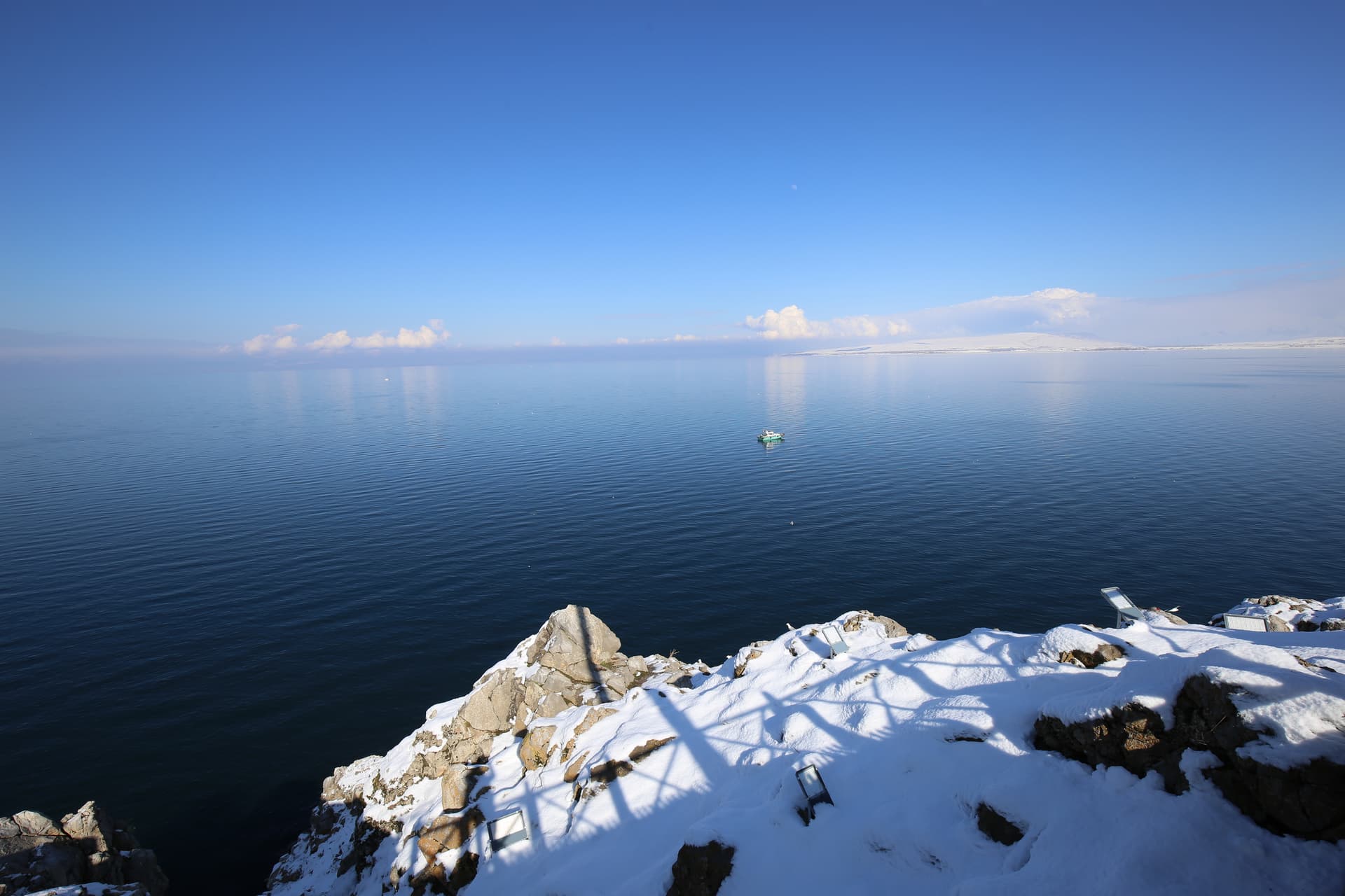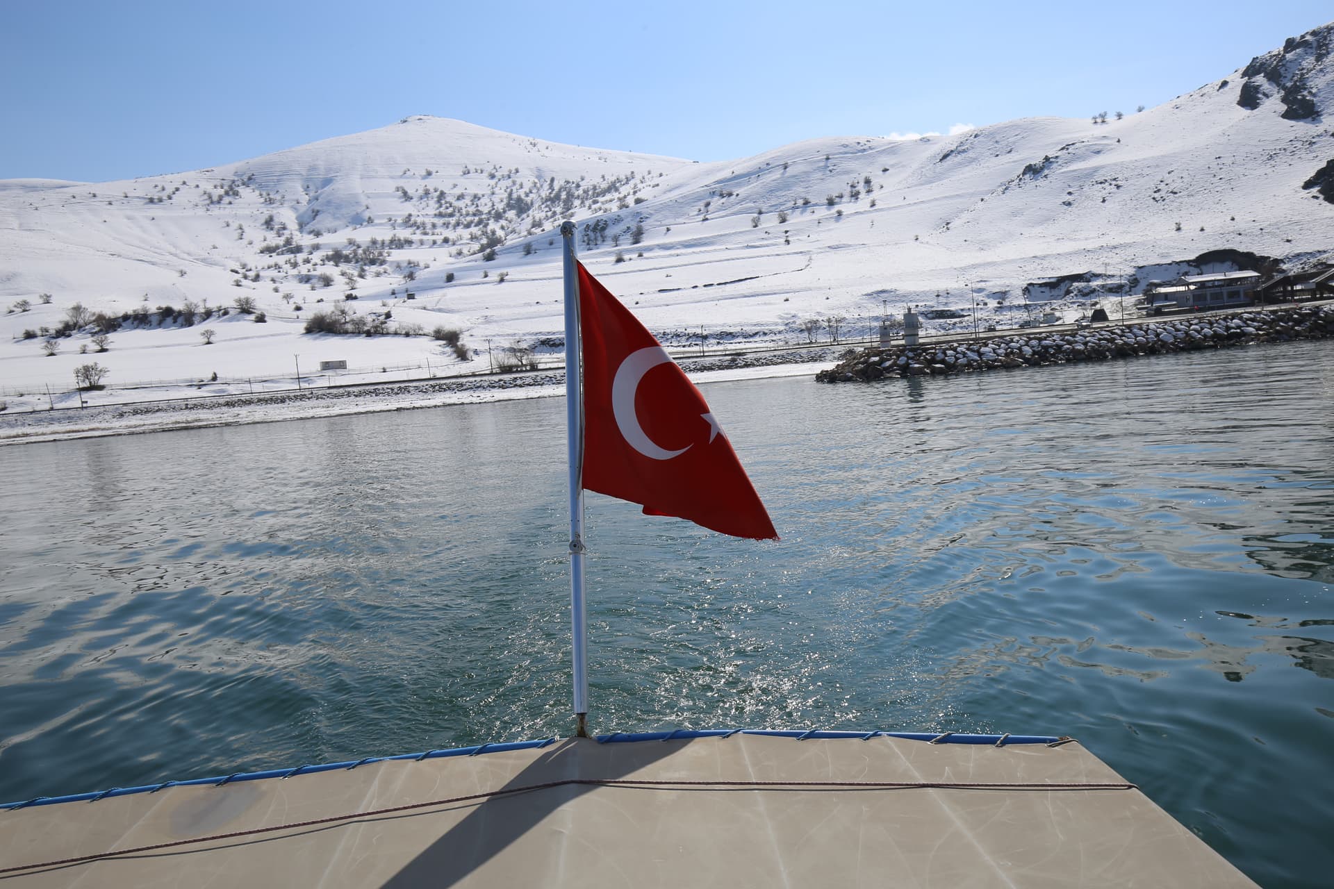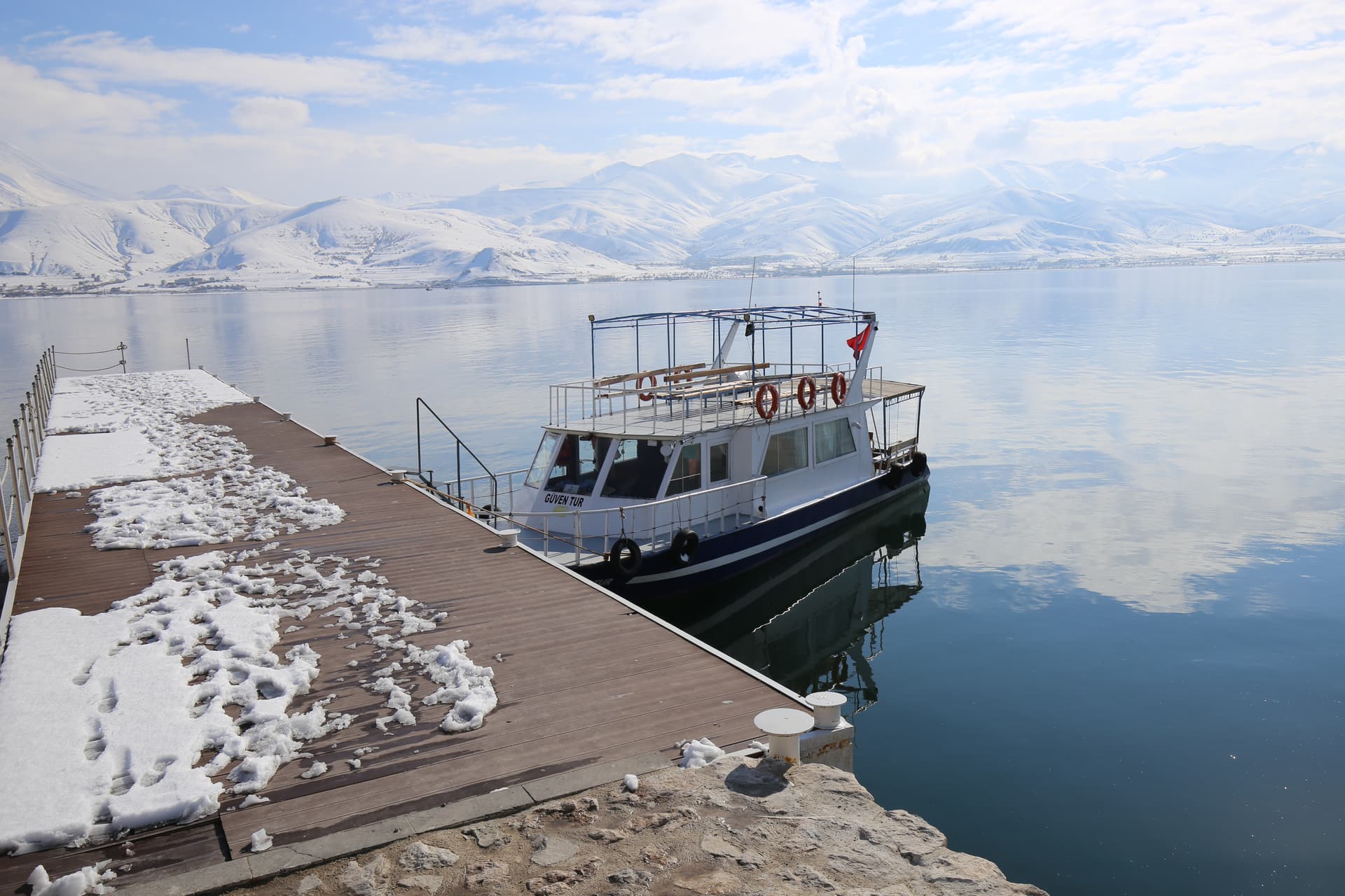Edremit → Gevaş → Akdamar 这一段路其实很顺,总的来说没多少车,跟我的预期一样。不过到了码头之后,我得知船主要求必须要凑齐10个人才能开船。当时包括我们在内一共只有4名游客。等了好一会,已经开始害怕人永远不来的时候,突然来了一家四口,一下子充满了开船的希望。果然,后面又来了两名散客,凑齐了10人,船长准备开船。今天(2024年2月19日)往返船票是每人200 TL,比前2-3年的20-25 TL涨了快10倍。
