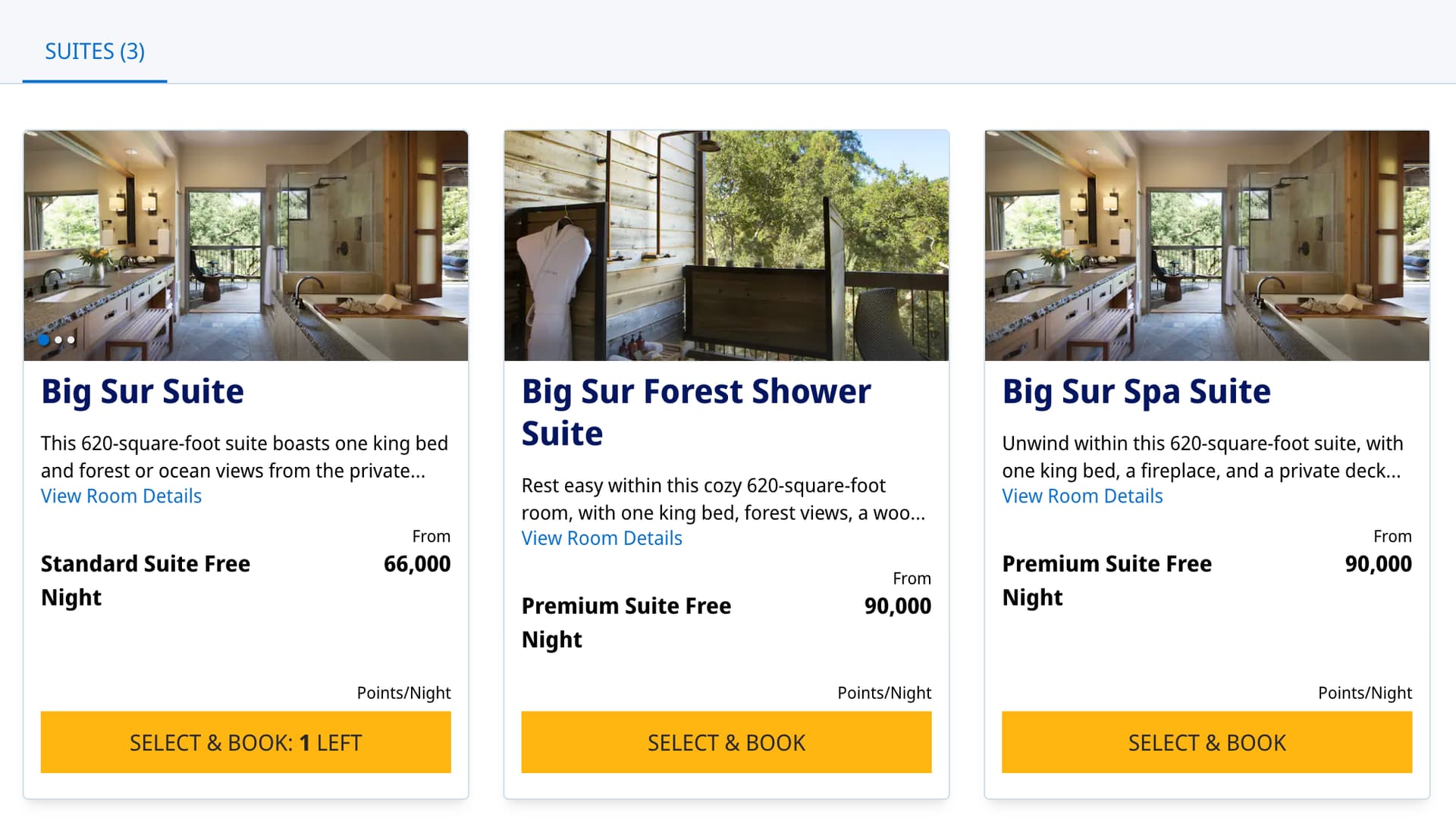 最近通过concierge订了Alila Ventena Big Sur。45k丐房没有了但是有66k的基础套。最后用90k+SUA订了两天。