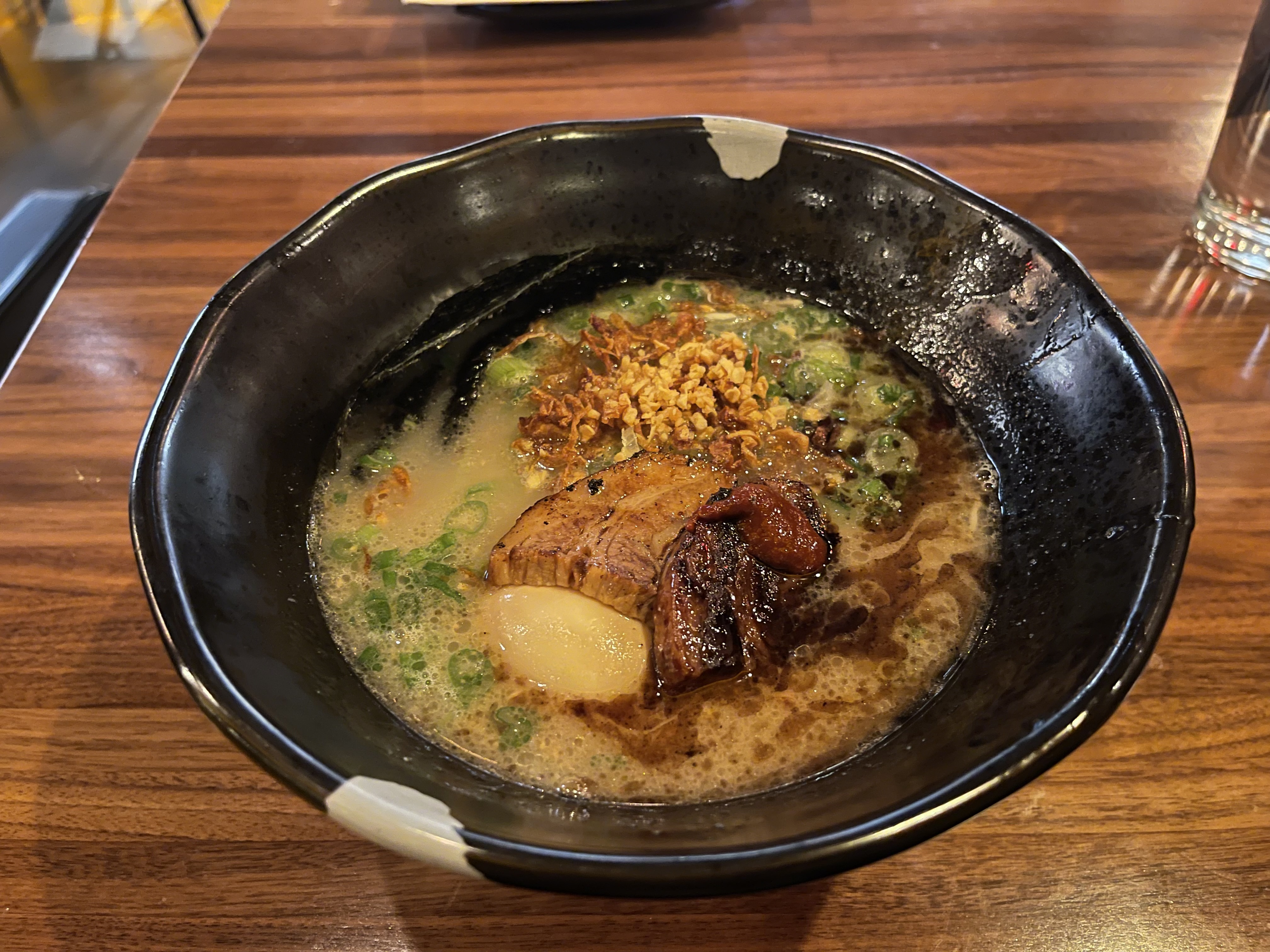 从Badwater Basin盐湖出来用淡水简单冲过脚之后天已然全黑,当时离航班从Vegas起飞大约还有4.5小时,因此一脚油门大约两个小时回到Vegas加完油之后离起飞大约还有两个半小时。时间上不够再回Chinatown于是就就近在Spring Valley的Rainbow Blvd附近找吃的。当晚是跨年夜因此很多店家都早早关门或者提前了打烊时间(包括Teazzi),好不容易找到这家Jinya Ramen正准备打烊,于是卖了个惨并保证很快吃完店家还是让进了。招牌拉面中规中矩,辣酱和蒜油存在感不强,叉烧是厚切的个人觉得可以再多炙烤一下。
