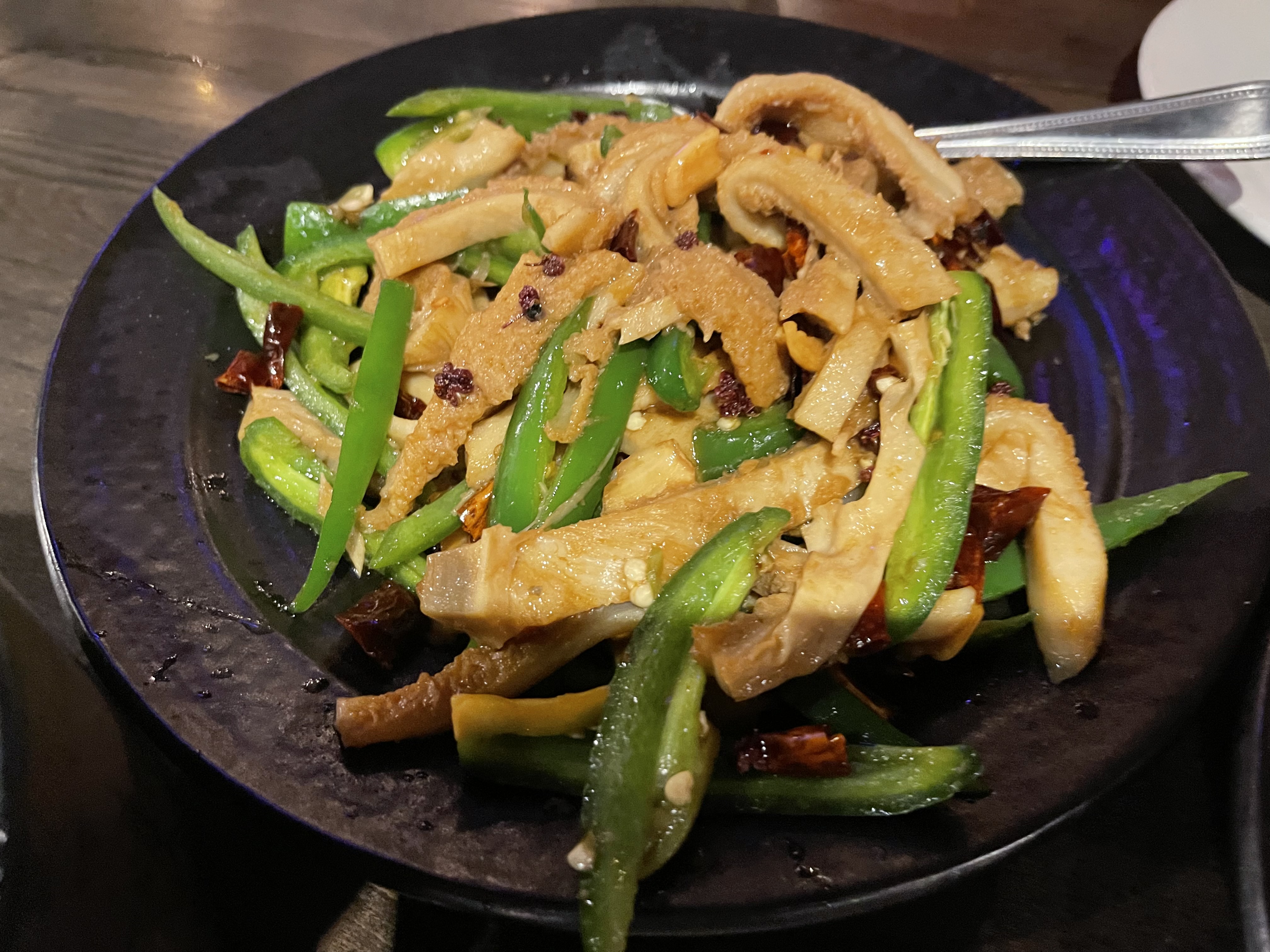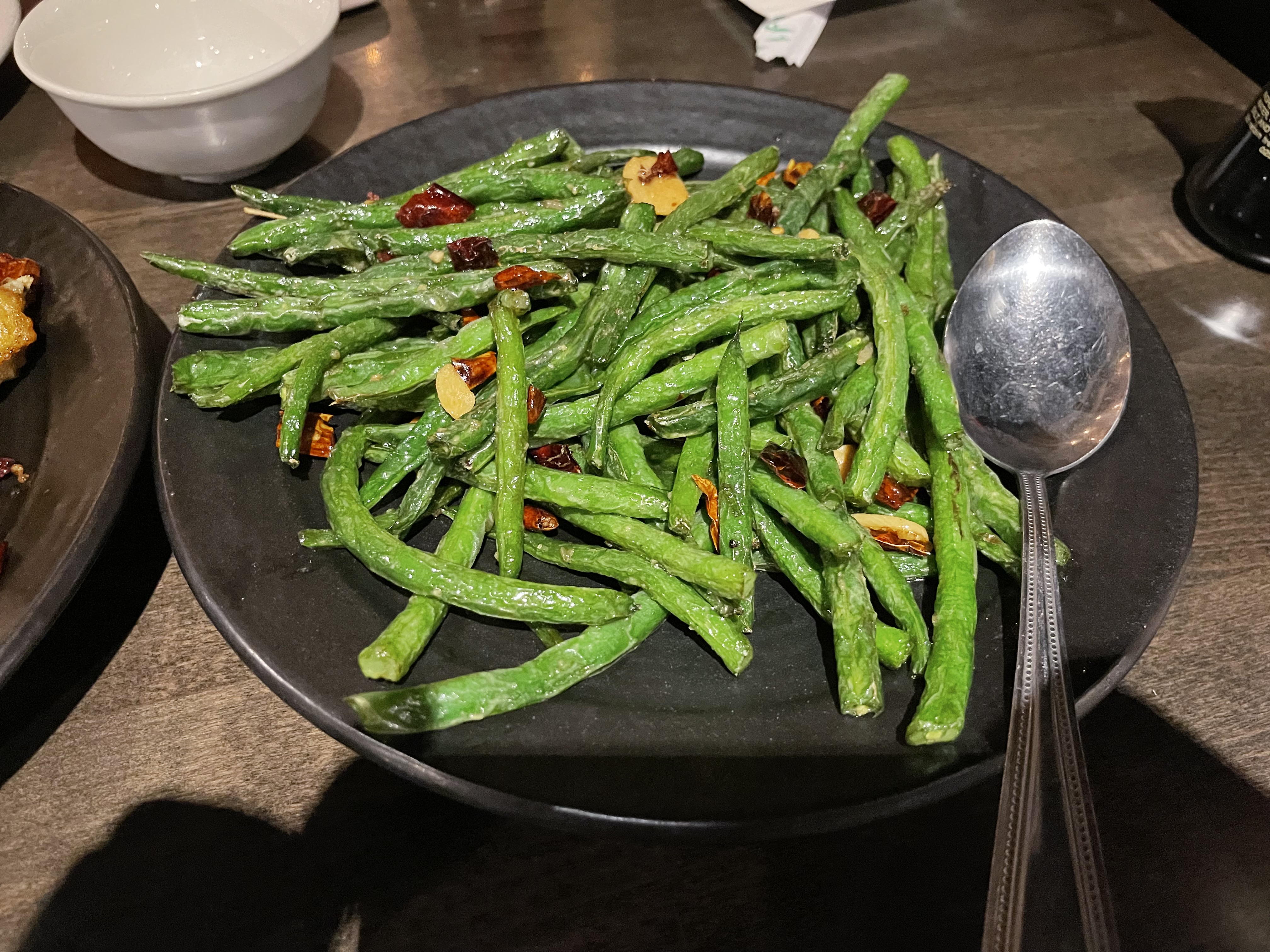 回到Jun Dynasty又等了约15分钟才有座位,很奇特的是店内很大一部分顾客都不是亚裔,不知道是不是和圣诞节其他餐厅都不营业和学校房价有关。老板娘指挥着后厨和服务员的一口四川话又让我们提着的心稍微放回去了一点。生意太好点菜耽误了一些时间,但是上菜很快(可能三个菜都是一个味型的)。这家做菜很舍得下花椒,每道菜除了辣之外都能感受到明显的麻味,在已经一周没有吃到像样的辣味中餐之后来一顿这样的的真的很不错。看起来店家对于平衡相对正宗的川菜和美式中餐很有一套,难怪可以在google上保持4.5的高分。