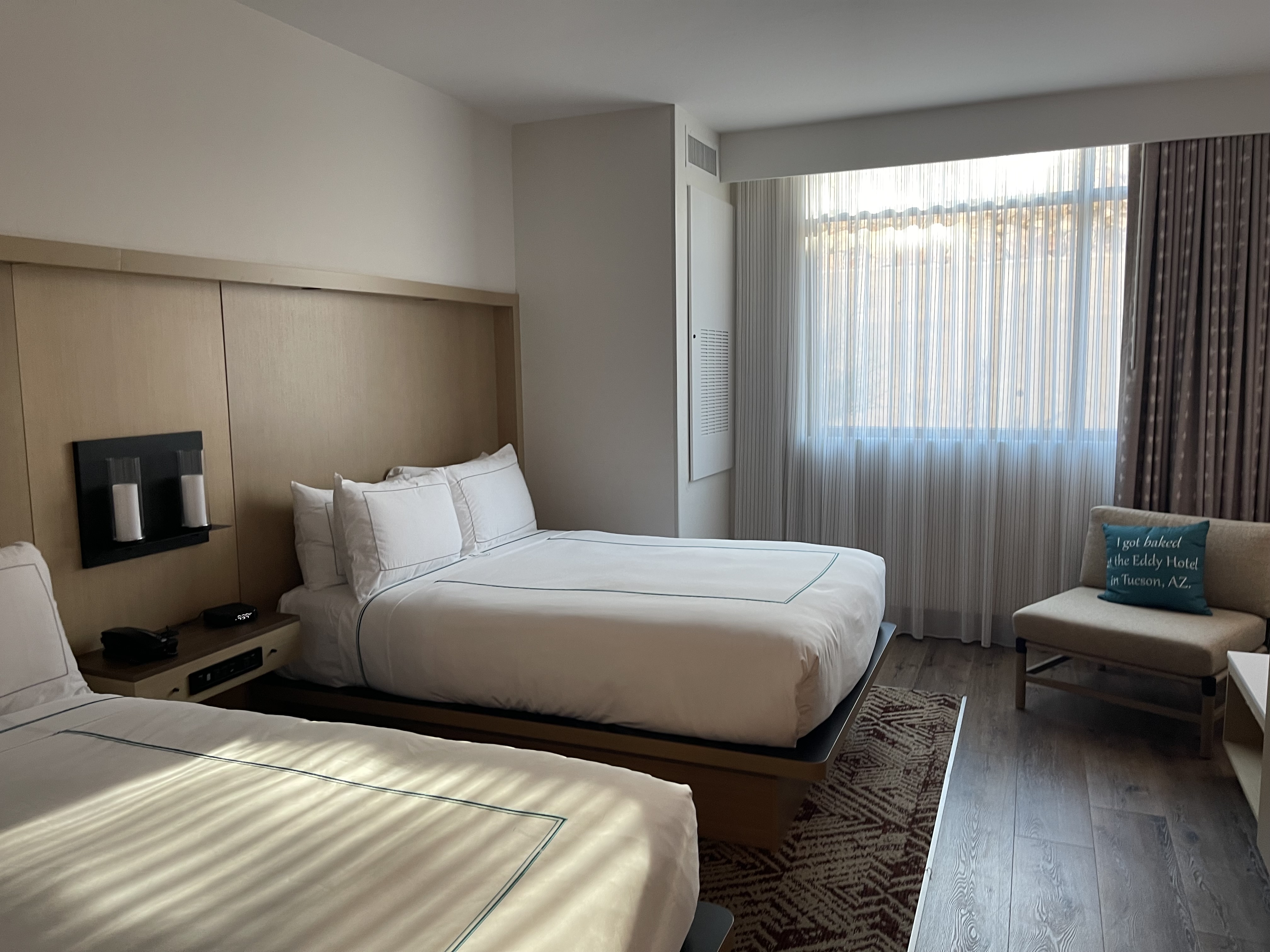 在拿到Amex的200-80后通过现金价预定了这家Tapestry Collection。在前一天歇脚的Hyatt Place用过早餐之后原本是打算把行李顺路寄存在这,但是前台小哥很热心的帮忙查询了房况并给了提前Check in (WABH和LXR Oceana学着点)。酒店的前身似乎是一个当地很有名的面包工厂,被现任业主盘下之后改造成为一个酒店,装潢方面保留了一些面包工厂的元素在房间挂画和餐厅墙上,但主体还是走的Tapestry的简洁风格。酒店非常新且客人不是特别多,看起来很多环节依旧处于磨合阶段,包括本应收费但被我们免费充了一整晚的充电桩,和早餐只有一个服务员的餐厅。酒店共两层,我们被分到的是一层的房间,但因为窗外的路基太高完全遮挡了视线所以房间里没有任何view有些遗憾。因为房费本身不到200,所以早餐除了用了30刀credit之外还额外加点了一些,分量很扎实味道中规中矩。最后临走之前又去前台拿了两瓶可乐才最终凑满了200触发了Amex offer。总之由于Hyatt在Tucson的中高端市场完全是真空状态,除了JW Marriott和Ritz之外如果价格合适的话也可以考虑一下这家Tapestry。