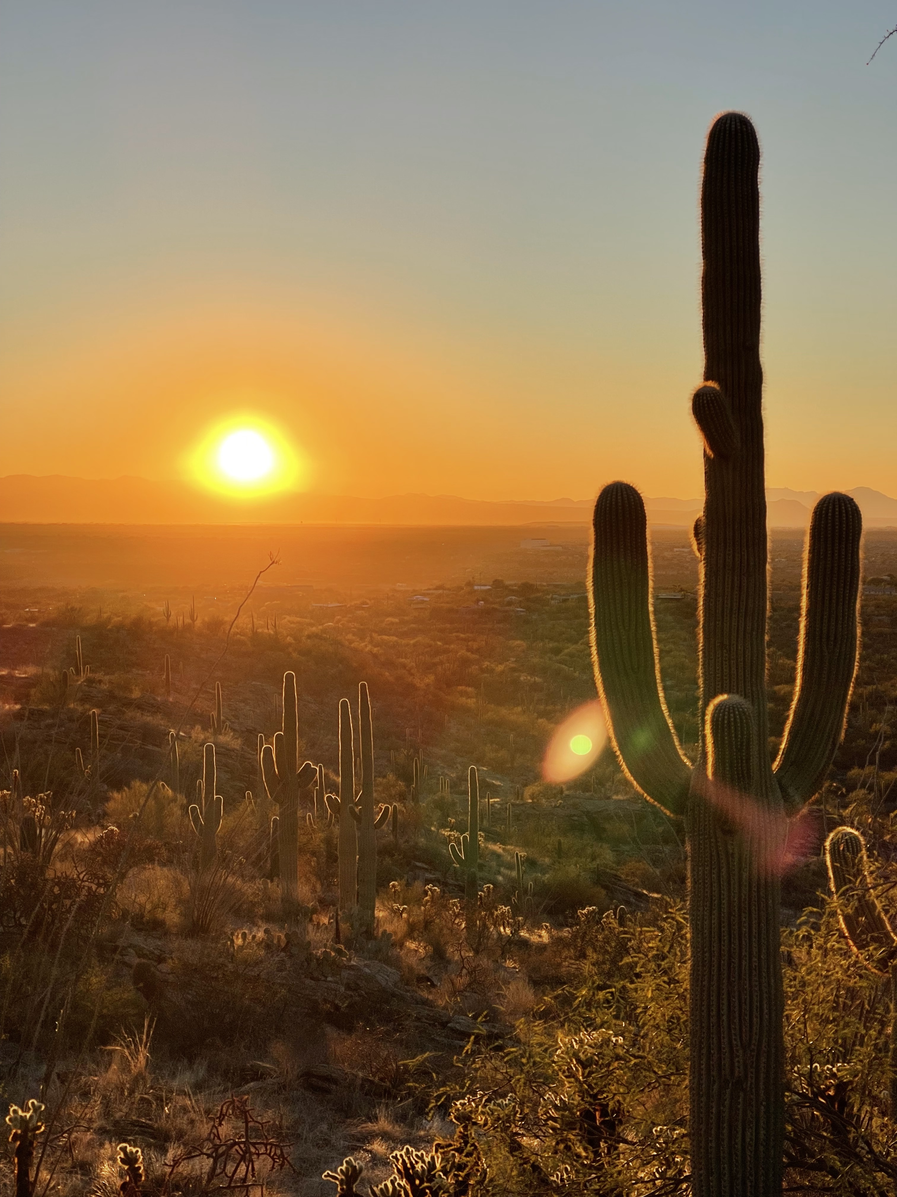 从Pima Air & Space Museum出来已经是四点多,离日落不到一小时。我们还是决定去Saguaro NP的西区Tucson Mountain快速看一圈。Tucson Mountain主要的观景点在Bajada Loop Drive,我们开了一圈的直观感受是相对Rincon Mountain来说这里的巨人柱仙人掌更密一些,但其他和Rincon Mountain也是大同小异。在National Park园区外的trail上其实也可以看到数量可观的仙人掌