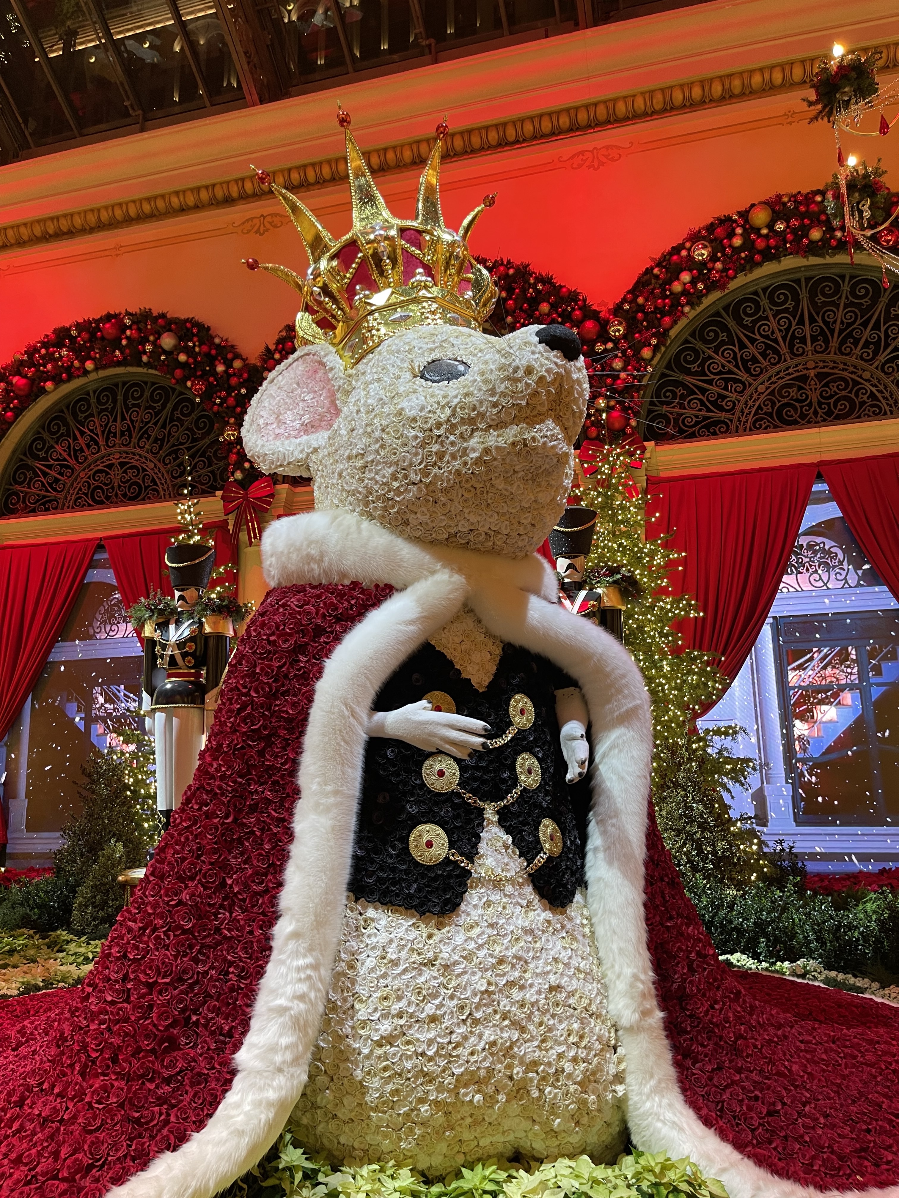 有自家后花园的果然不一样,Check in旁边的Bellagio Garden常年人山人海,圣诞节期间更是寸步难行,今年圣诞装饰主题是胡桃夹子,有一个巨大的Mouse King,一个做着圣诞美梦的小女孩,士兵花仙子都一种人物,仿佛置身小女孩的梦境。