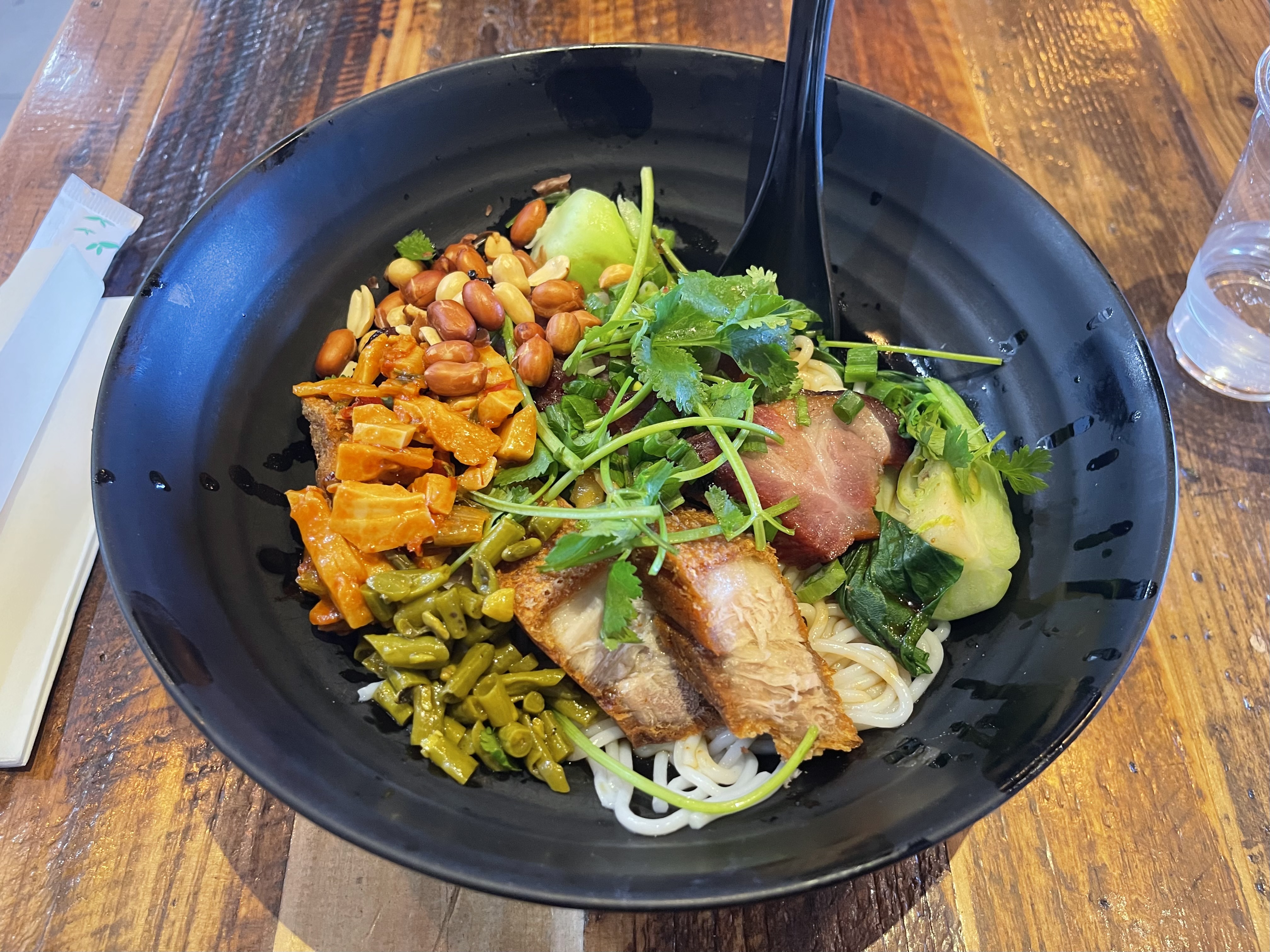 从Biosphere 2回来的路上AZ-77旁边就有一家当地很有名的Noodleholics米粉店,他家在Tucson共有两家店评价都不错。主打是桂林米粉,菜单上也有一些面食可供选择。点了一份招牌桂林干粉,叉烧一般比较柴,烧肉还不错,对于精神广西人来说整体上算是在美国吃过不错的桂林米粉,但是还是离Edison的面缘有一段距离。